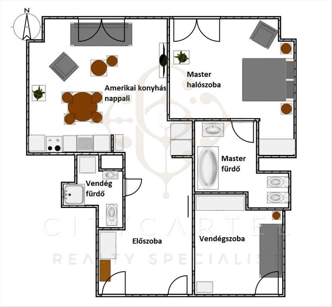 A lakás beleértve minden prémium bútort és gépet – teljes berendezéssel együtt eladó, így az új tulajdonosnak tényleg csak a személyes tárgyait kell hoznia.