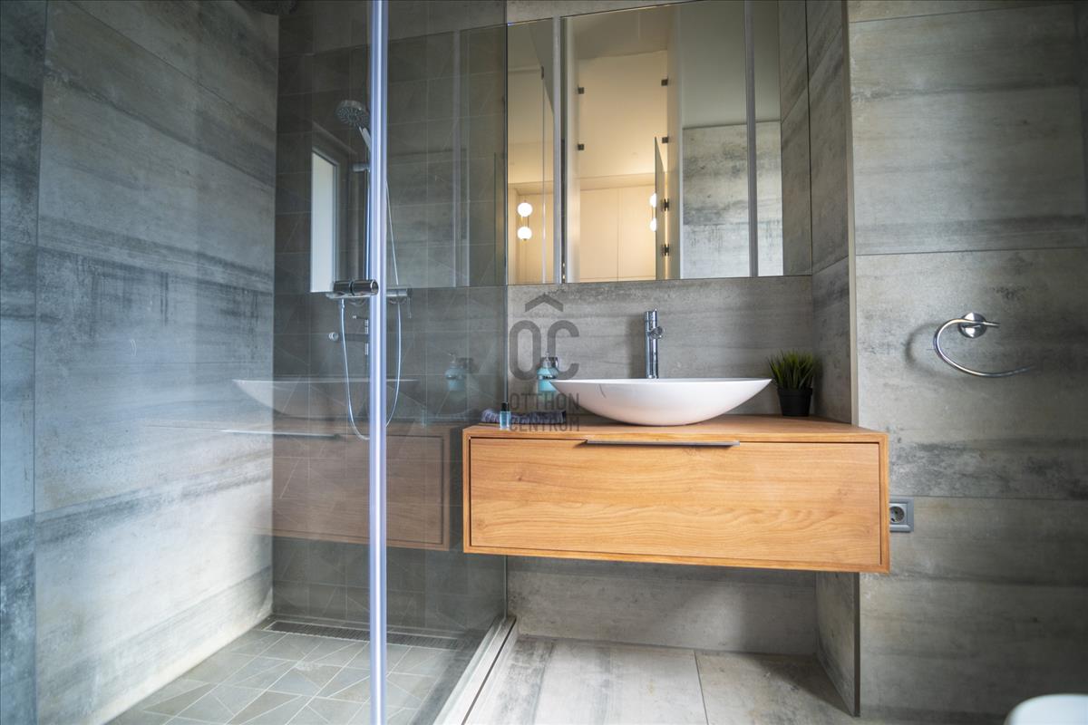 A fűtésről padlófűtés és két klíma gondoskodik. a lakásban két fürdőszoba is van, az egyik zuhanyzós és Wellis kádas, a másik csak zuhanyzós.