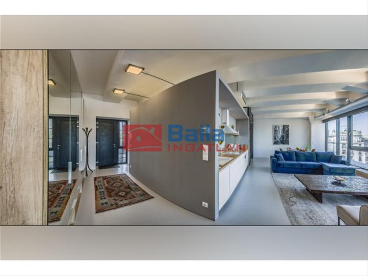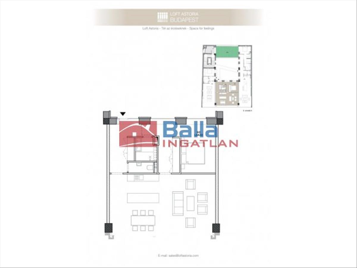 Az eladó ingatlan egy hatalmas nappali, konyhából, tágas fürdőszobából walk-in zuhanyzóval, gardróbból, külön mosdóból és nagy méretű hálóból áll. a lakás különlegessége a közel 5 méteres faltól-falig húzódó ablak, ahonnan a belvárosra láthatunk rá, a hatalmas belső terek és az osztott, fémkeretes ablakok, ajtók, amelyekkel elválasztják ezt a teret.