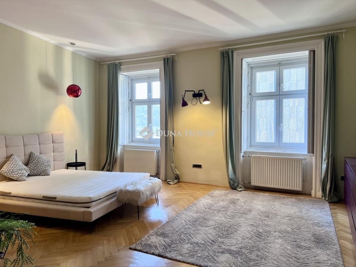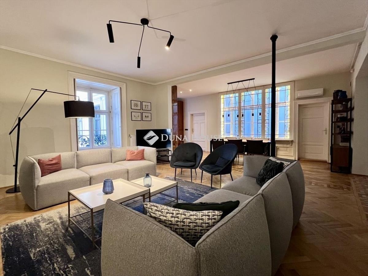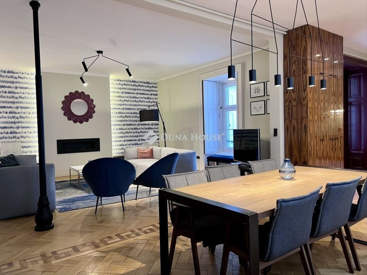 Stílusos nagypolgári lakás a Duna korzó mellet Az 5. kerület reprezentatív részén, a Duna korzó és a Vigadó tér szomszédságában, 173 nm-es, 3. emeleti, dunai panorámás, jó fényviszonyokkal rendelkező lakás eladó. a ház 1814-ben épült eredeti nevén Gyürky ház- Hofrichter József tervei alapján, az akkoriban kidolgozott városépítési terv, egyik mai napig szép állapotban lévő épülete ez a klasszicista lakóépület. a homlokzat szép állapotú, a lépcsőház karbantartott, gazdagon díszített. a lakás átalakítása/felújítása közben fő szempont volt a mai kor elvárásainak megfelelni, ugyanakkor megtartani a kor utánozhatatlan stílusjegyeit az ingatlanon belül, a beltéri ajtókat, eredeti fa parkettát, az étkezőben a díszített ablakot és a tágas tereket. Mindezek mellet modernizálták a vezeték hálózatot, a fűtés rendszert a konyhát és két fürdőszoba került kialakításra. a lakás egyik különlegessége a lépcsőházból nyíló saját 7 nm-es gangrész, ami jelenleg privát teraszként funkcionál. Remek környezet, gyönyörű ház, stílusos lakás, remek választás saját vagy befektetési célra egyaránt.