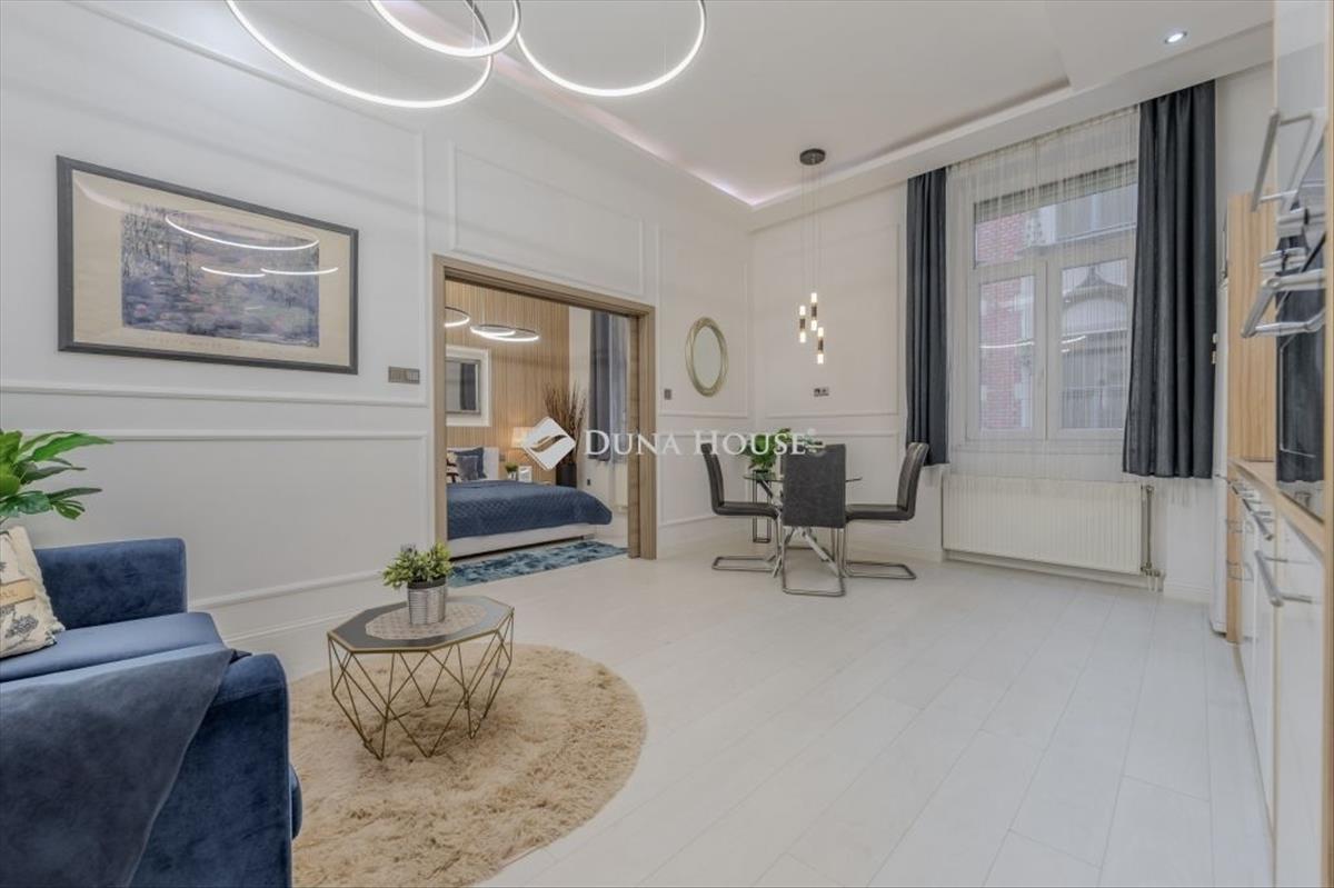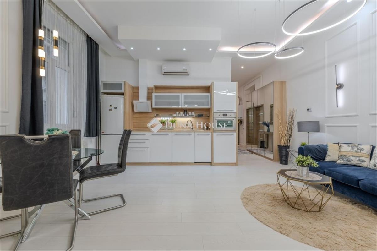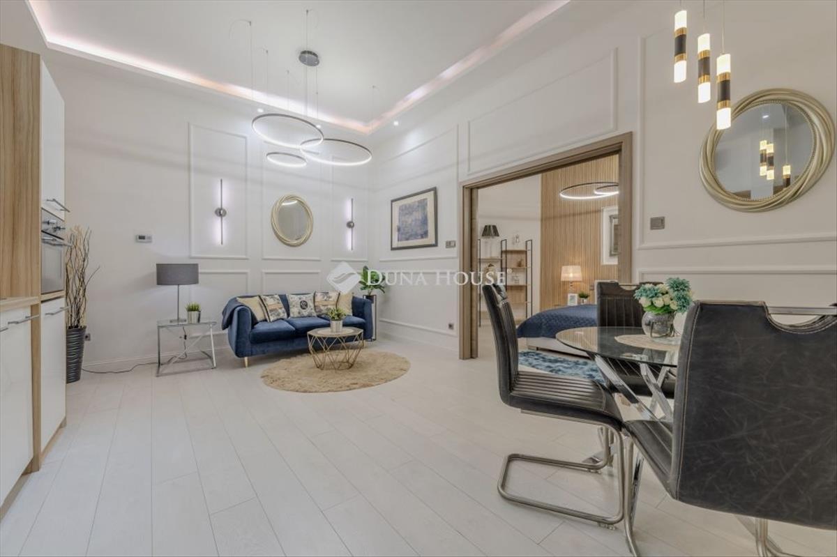 ***V. Gyönyörűen felújított, i. emeleti, utcai nézetű, nappali + 2 hálószobás lakás a ferenciek TERÉNÉL***For English, scroll down Modern Elegancia az v. kerület szívében Teljes Körűen Megújult, Azonnal Költözhető LuxusEladásra kínálunk egy prémium kategóriás, amerikai konyhás nappali + 2 különnyíló hálószobás ékszerdobozt a Ferenciek terénél, csendes utcában. Az ingatlan a közelmúltban teljes műszaki és esztétikai felújításon esett át, így leendő tulajdonosát kifogástalan állapot fogadja. a lakást a modern, letisztult elegancia jellemzi: a minőségi és esztétikus kivitelezés minden részletében a legmagasabb színvonalat képviseli. a tágas közösségi tér mellett a két külön bejáratú hálószoba biztosítja az intimitást és a kényelmet. Főbb jellemzők és extrák:Gépesített konyha: Modern konyhatechnológia, beépített mosogatógéppel felszerelve a maximális kényelemért. Klimatizált terek: a lakás hőmérsékletét légkondicionáló biztosítja a forró nyári napokon is. Prémium felszereltség: Igényes burkolatok, modern világítástechnika és minőségi anyaghasználat minden helyiségben. Azonnal költözhető: a lakás tehermentes és rövid határidővel birtokba vehető. Kiváló lokáció: Az v. kerületi presztízse és kényelme karnyújtásra mindentől (Duna-part, Váci utca, kiváló közlekedés). Felújított, patinás társasházSaját, 10 nm -es TÁROLÓEzt az otthont kifejezetten igényes vevőknek ajánljuk, akik értékelik a magas minőséget és a belváros patinás hangulatával ötvözött kortárs luxust. További kérdéseivel és megtekintéssel kapcsolatban keressen bizalommal! ****************DISTRICT V beautifully renovated, 1st floor, street-facing apartment with living room + 2 bedrooms near ferenciek TEREModern Elegance in the Heart of District V Fully Renovated, Move-in Ready LuxuryWe offer for sale a premium-category jewelry box featuring an open-plan kitchen/living room and two separate bedrooms, located in a quiet street near Ferenciek tere. The property has recently undergone a complete technical and aesthetic renovation, ensuring it awaits its new owner in impeccable condition. The apartment is characterized by modern, clean elegance: the high-quality and aesthetic craftsmanship represents the highest standards in every detail. Alongside the spacious communal area, the two separate bedrooms provide privacy and comfort. Key Features and Extras:Fully Equipped Kitchen: Modern kitchen technology, including a built-in dishwasher for maximum convenience. Air-conditioned Spaces: Air conditioning ensures a pleasant temperature even on the hottest summer days. Premium Finishes: Sophisticated tiling, modern lighting technology, and high-quality materials throughout. Move-in Ready: The property is unencumbered and available for immediate possession. Excellent Location: The prestige and convenience of District V within arms reach of everything (Danube bank, Váci Street, excellent public transport). Renovated, Historic BuildingPrivate 10 sqm storage unit includedThis home is specifically recommended for discerning buyers who appreciate high quality and contemporary luxury combined with the historic atmosphere of the city center. For further questions or to arrange a viewing, please feel free to contact me! Hitel.hu - Hasonlítsa össze a bankok lakáshitel ajánlatait