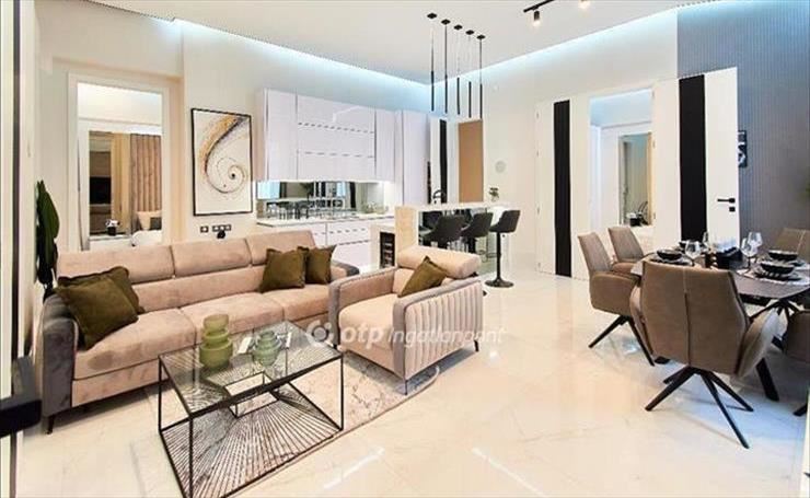 AZ ingatlan teljes, egyedileg készített, minőségi bútorzattal, teljes berendezéssel ( a képeken látható állapotban), beépített gépekkel felszerelve eladó.