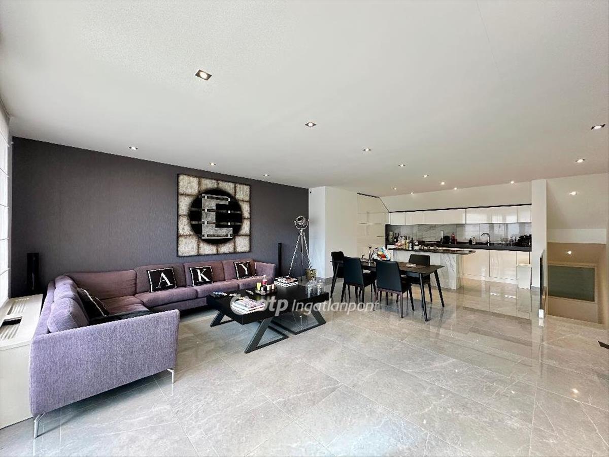 Az alsó szinten egy nagyvonalú, világos nappali-étkező tér kapott helyet, amely ideális mindennapi használatra és vendégek fogadására egyaránt.