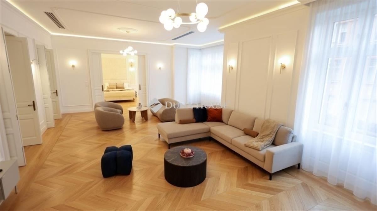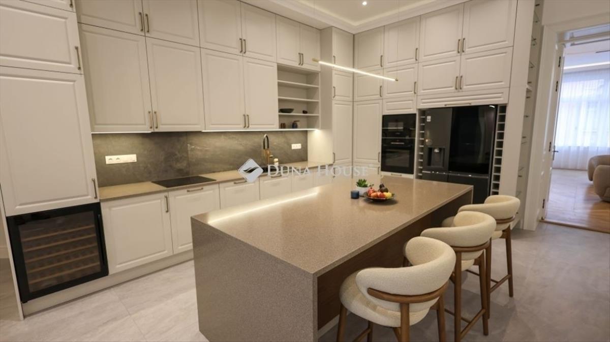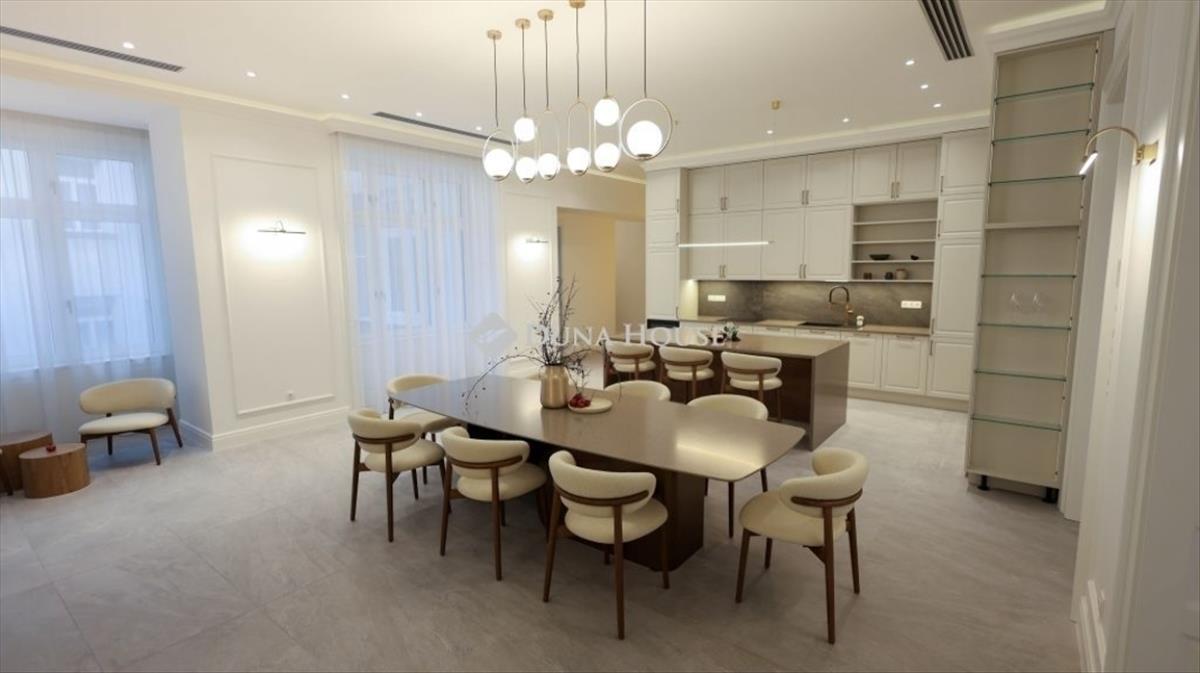 Eladó Budapest egyik legexkluzívabb lakóingatlana - időtálló elegancia és modern luxus harmóniája, teljes bútorzattal együtt! Fedezze fel a Belváros szívében ezt a lenyűgöző, 291 m²-es prémium kategóriás lakást, amely a klasszikus elegancia és a kortárs kényelmi megoldások tökéletes összhangját kínálja. Ez az exkluzív otthon a Semmelweis utca patinás, autóforgalomtól elzárt mellékutcájában található, egy gondosan karbantartott, 1904-ben épült, öt szintes társasház 2. emeletén. a belvárosi pezsgő életet nyugalmas környezetben ötvöző lakás ára a prémium minőségű teljes bútorzatot is magában foglalja, így azonnal költözhető. a 2025-ben teljeskörű, magas színvonalú felújításon átesett ingatlan visszafogott színvilága, igényes anyaghasználata és időtálló designja az exkluzív otthon megteremtésének csúcsát képviseli - a napfényben úszó szobák pedig a mindennapi kényelem és luxus érzését nyújtják. Főbb jellemzők:- Elegáns tölgy parketta rézbetéttel, amely a tartósság és a stílus tökéletes kombinációját nyújtja- Eredeti, felújított nyílászárók redőnnyel a modern funkcionalitásért- Villeroy & Boch szaniterek, exkluzív design fürdőszobákban- Okos otthon- Eredetinek megfelelő új, hő- és hangszigetelt nyílászárók redőnnyel ellátva- Finn szauna a teljes relaxációért- Egyedi tervezésű bútorok a praktikus tárolás és esztétikum jegyében- Hőszivattyús mennyezeti hűtés és padlófűtés az energiatakarékosság és kényelem érdekébenAz ingatlan elrendezése a mindennapi kényelmet szolgálja:- Tágas, reprezentatív nappali vendégek fogadására- Design konyha, legmagasabb színvonalú beépített gépekkel és tágas étkezővel- Négy hálószoba, köztük egy exkluzív masters bedroom- Két igényesen kialakított fürdőszoba (zuhanyzóval és fürdőkáddal)- Finn szauna a teljes kikapcsolódáshozA gondosan megtervezett részletek és a kifinomult kivitelezés minden ponton a luxus színvonalát tükrözik, miközben otthonosságot sugároznak. a belváros központi, ugyanakkor csendes fekvésének köszönhetően a környék hangulatos utcácskái kávézókkal, éttermekkel, galériákkal tarkítottak, ahol minden pillanatban élvezheti Budapest vibráló életét. a lakás központi fekvése mellett kifejezetten csendes, a tulajdonosok komoly figyelmet szenteltek a legmagasabb minőségű hang és hőszigetelésre. a kiváló közlekedési lehetőségek a 2-es és 3-as metró, számos busz és villamos lehetővé teszik a város bármely pontjának könnyű elérését. Emellett a közelben számos egyetem, neves iskola, kulturális intézmény és mindennapi bevásárlási lehetőség található. Ez az exkluzív lakás ideális választás azok számára, akik a belváros szívében keresnek értékálló, elegáns és azonnal költözhető otthont, ahol a klasszikus polgári életérzés és a modern luxus ötvözete minden részletben megjelenik. Ne hagyja ki ezt a páratlan lehetőséget! Vegye fel velünk a kapcsolatot, és kérje személyes bemutatónkat még ma! Hitel.hu - Hasonlítsa össze a bankok lakáshitel ajánlatait