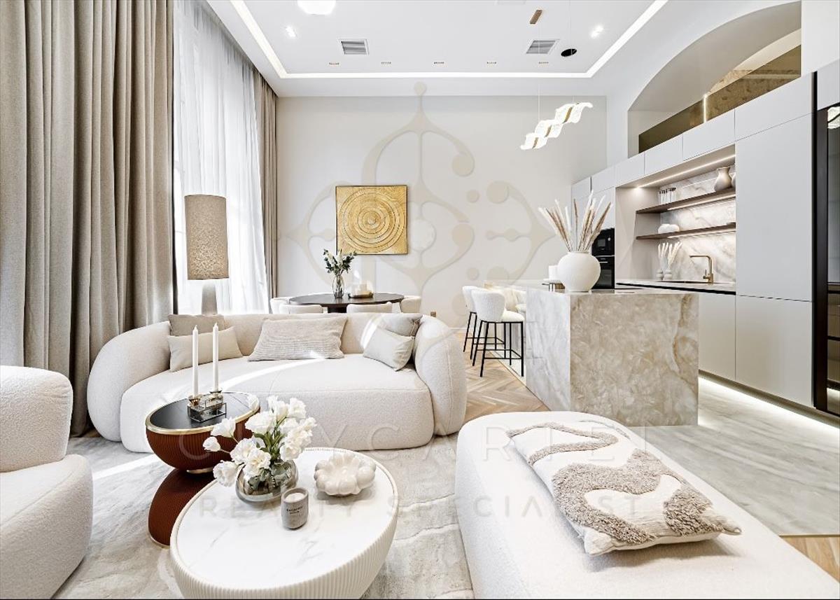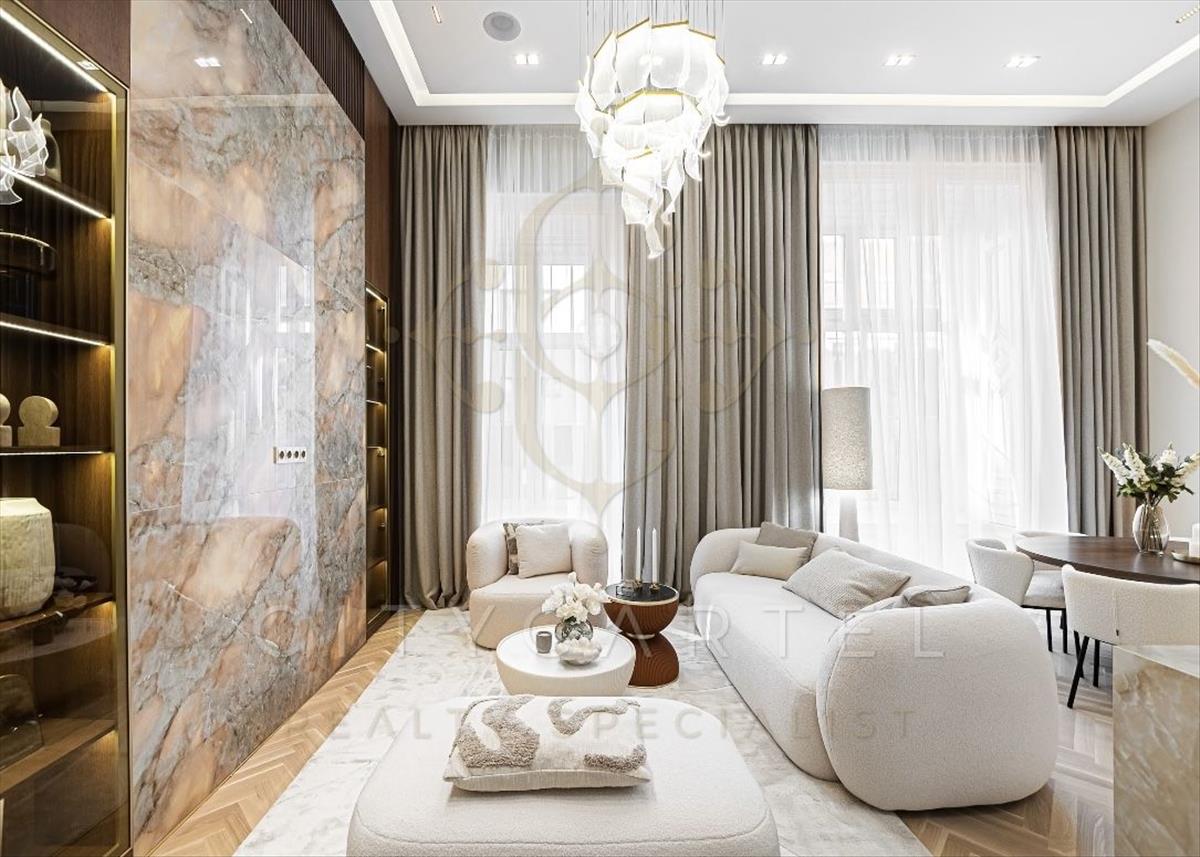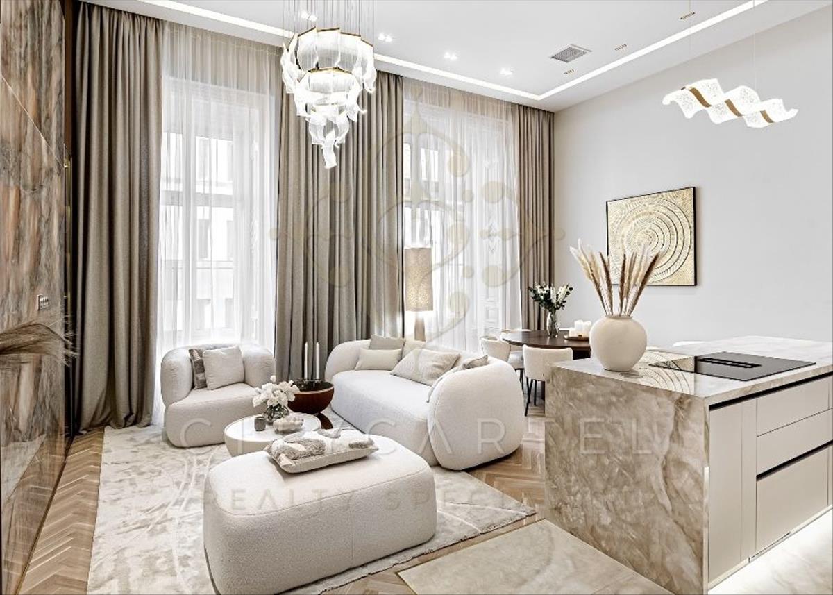 Páratlan luxus a bazilika SZOMSZÉDSÁGÁBANAz v. kerület szívében, presztízsértékű utcában, 96 nm-es, kétszintes, nappali + 2 hálószobás + 2 fürdőszobás luxuslakás, amely minden részletében a minőséget, az eleganciát és a modern otthonérzetet képviseli.