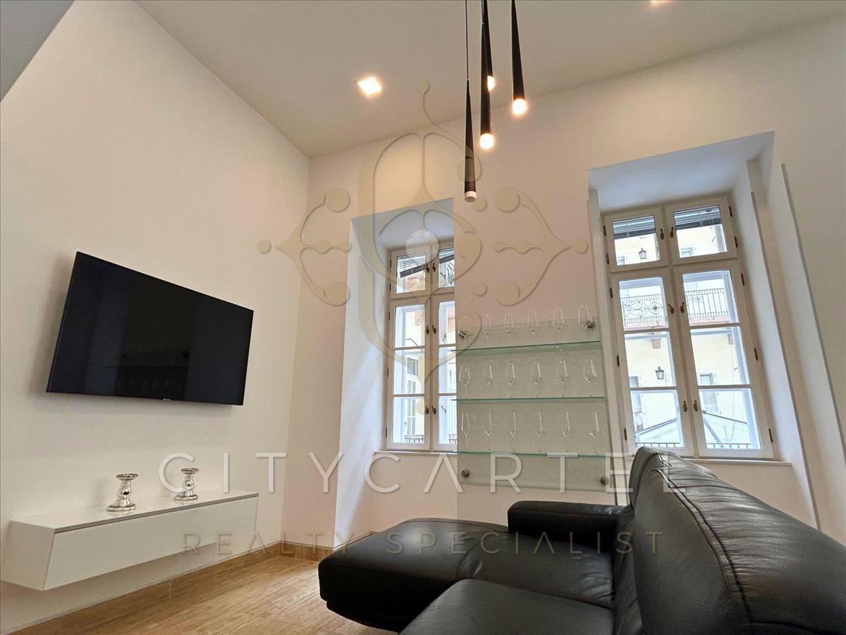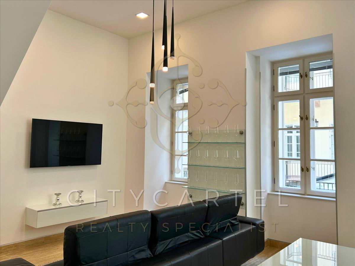 Az v. kerületben, a belváros szívében egyik exkluzív apartmanházában egy 76 nm-es, belső kétszintes, amerikai konyhás nappali + 2 hálószobás kiváló elosztású 1. emeleti lakás, liftes épületben eladó vagy BÉRBEADÓ.