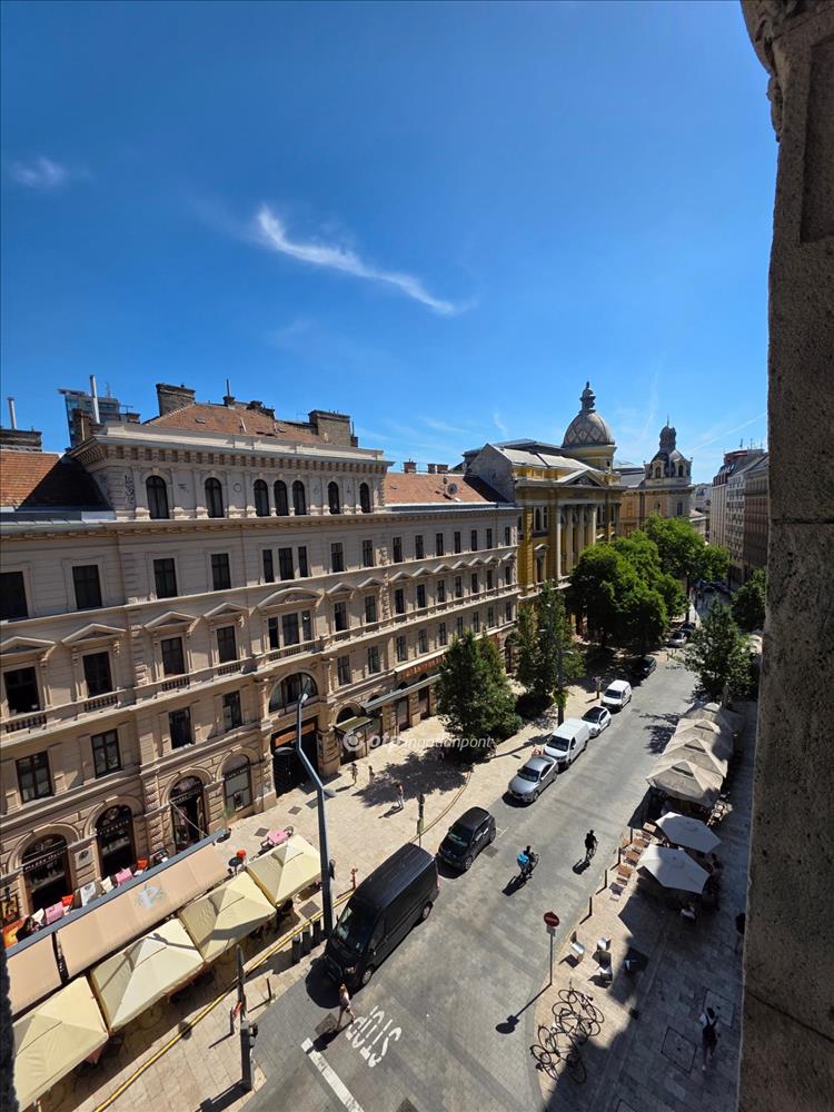 A lakás egy 4 emeletes lifttel szerelt, patinás épület 3. emeletén található, ablakai többek között a Ferenciek téri templomra, és az Ybl Palotára néznek, mindegyik ablaka az utcára néz, kivéve a konyha és a kis szoba.
