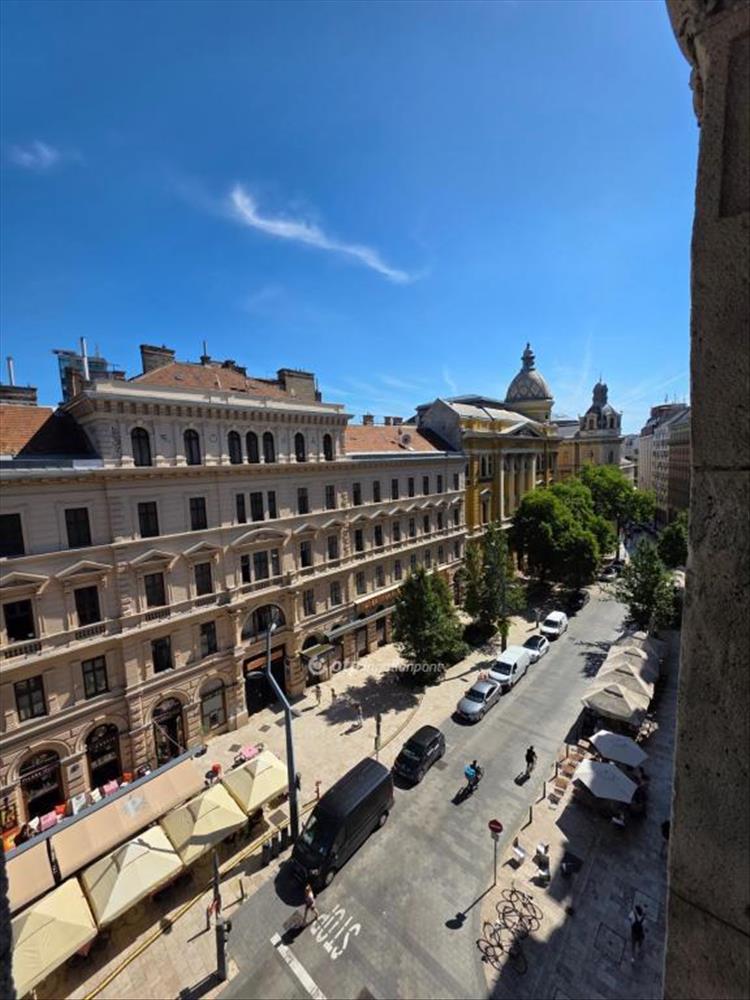 A lakás egy 4 emeletes lifttel szerelt, patinás épület 3. emeletén található, ablakai többek között a Ferenciek téri templomra, és az Ybl Palotára néznek, mindegyik ablaka az utcára néz, kivéve a konyha és a kis szoba.