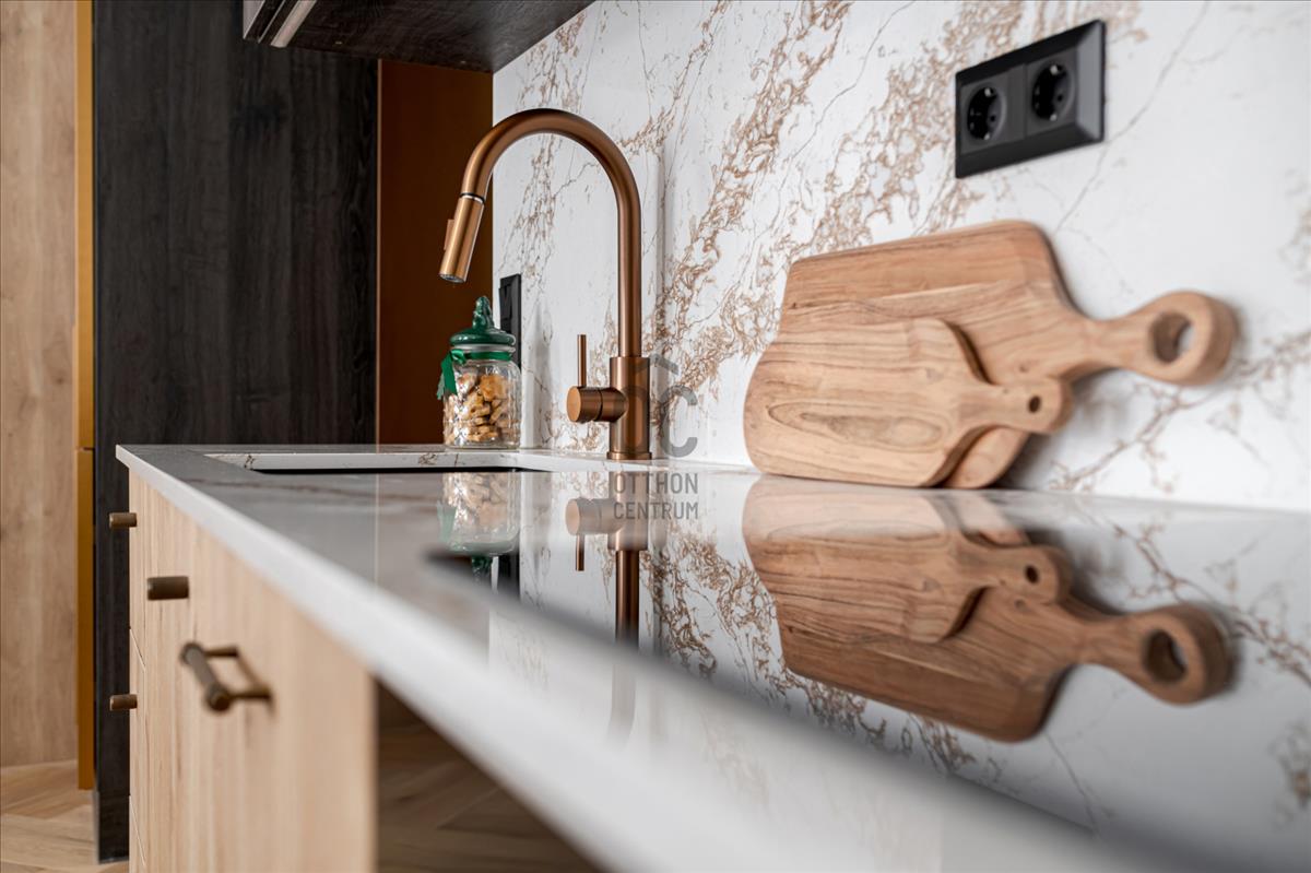 -Az ingatlan magas műszaki és esztétikai színvonalon került kialakításra, kizárólag prémium anyagok felhasználásával. a belső tér átgondolt, funkcionális, ugyanakkor elegáns és időtálló.
