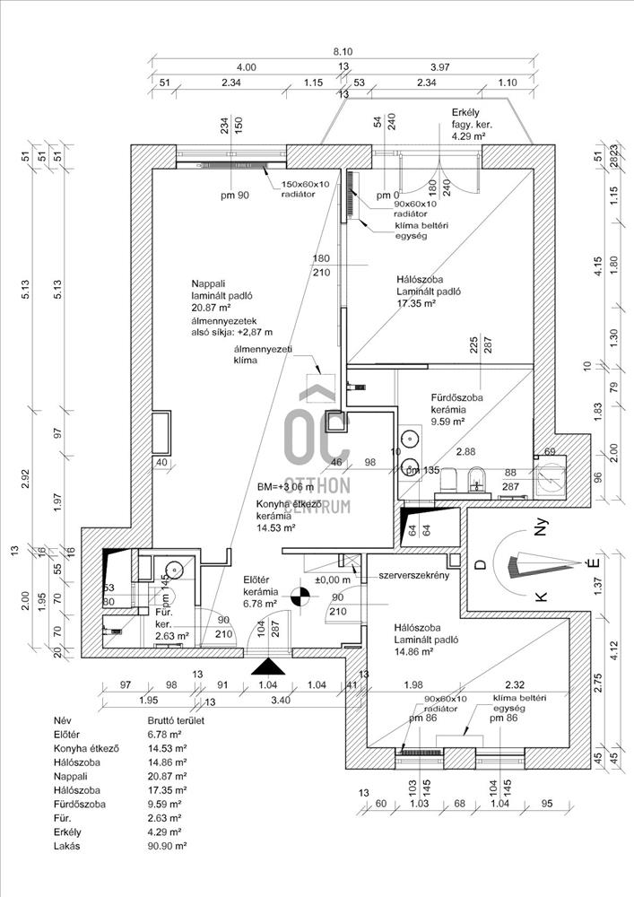 Az ingatlan tulajdoni lap szerint 85 nm. De az átalakítást követően nőtt a hasznos alapterület száma.