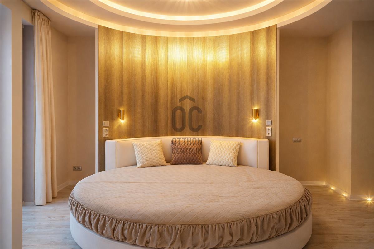 Az fő hálószobát egy széles, eltolható üvegajtó választja el a fürdőszobától, melyet ha kihúzunk a két tér egybeolvad. a main bedroom további ékessége egy hatalmas prémium, bőr körágy, mely vonalához igazodó beépített szekrény teszi különlegesen vonzóvá.