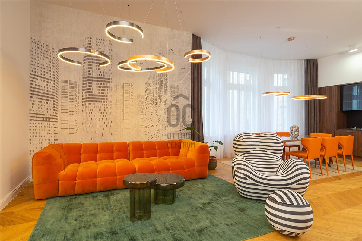 A prémium minőségű, egyedi tervezésű bútorzat, designlámpák, burkolatok és kiegészítők összértéke megközelítőleg 24 millió forint, amely a vételár részét képezi. a berendezésben olyan ikonikus darabok is megtalálhatók, mint a Gaetano Pesce által tervezett Up 50 fotel, valamint neves gyártók termékei.