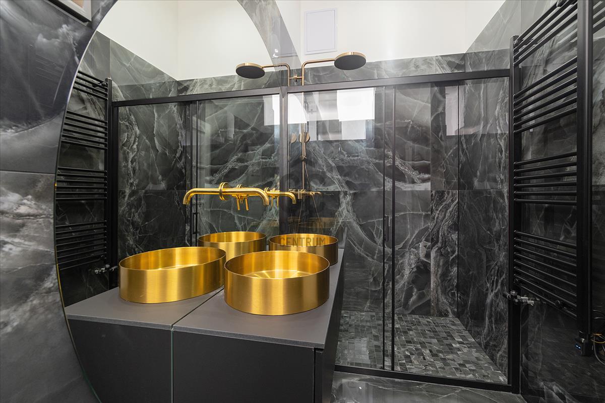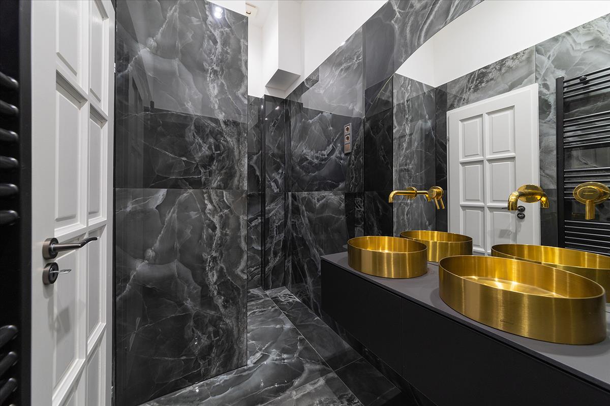 - Prémium burkolatok: chevron tölgyparketta, márványhatású nagylapok, exkluzív kerámiák