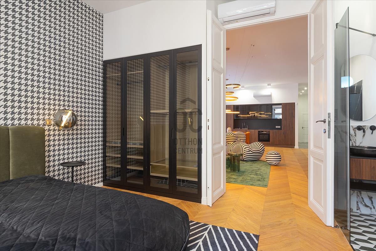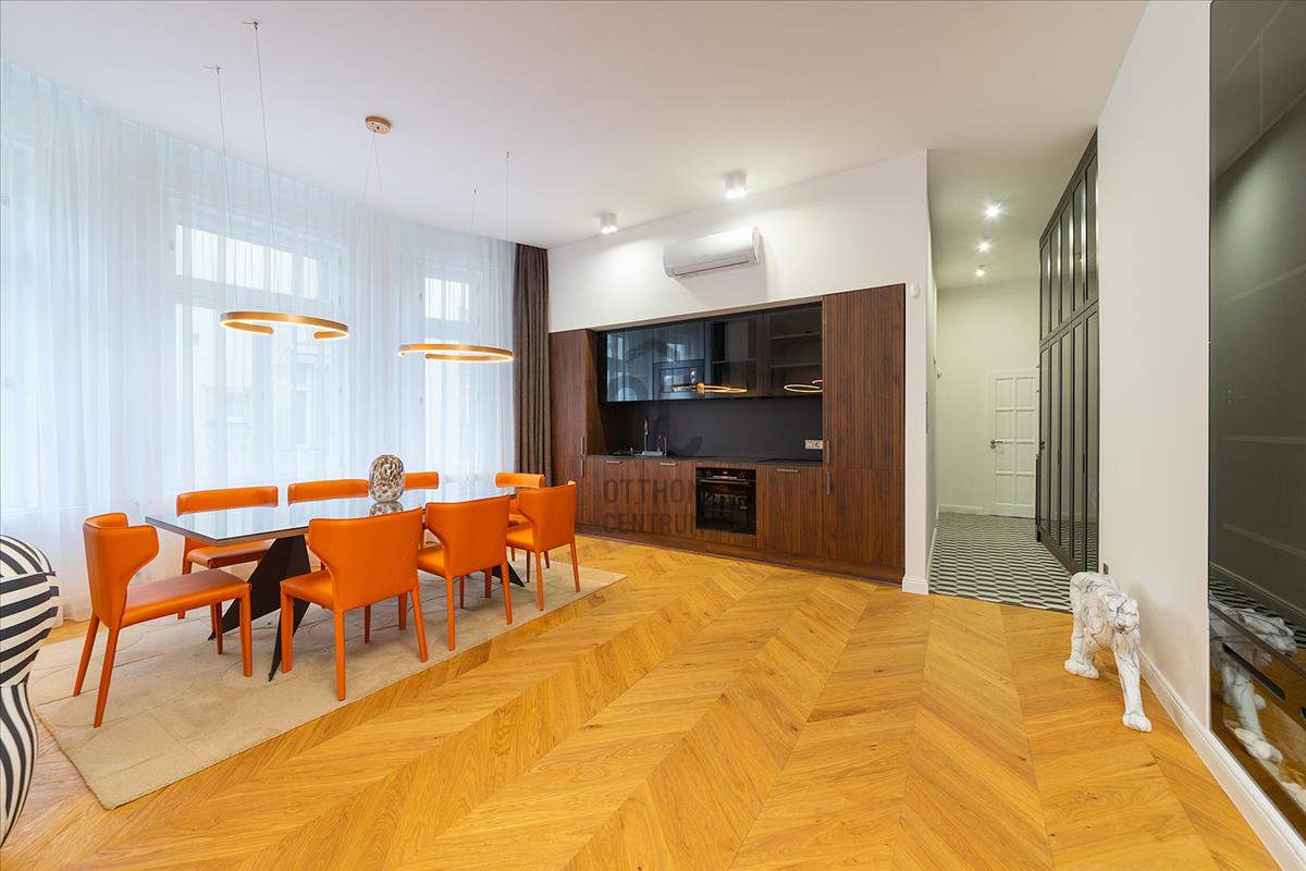 Budapest belvárosának szívében, az v. kerületben, díjnyertes belsőépítészeti koncepció alapján kialakított lakás.