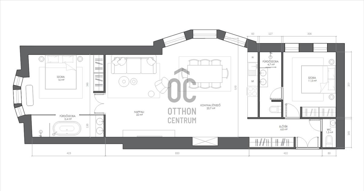 A lakás minden részletében az ergonómia, a funkcionalitás és az esztétikum egysége érvényesül. a bútorok, beépített elemek és válaszfalak már a tervezési fázisban a maximális helykihasználás és komfort érdekében kerültek kialakításra.
