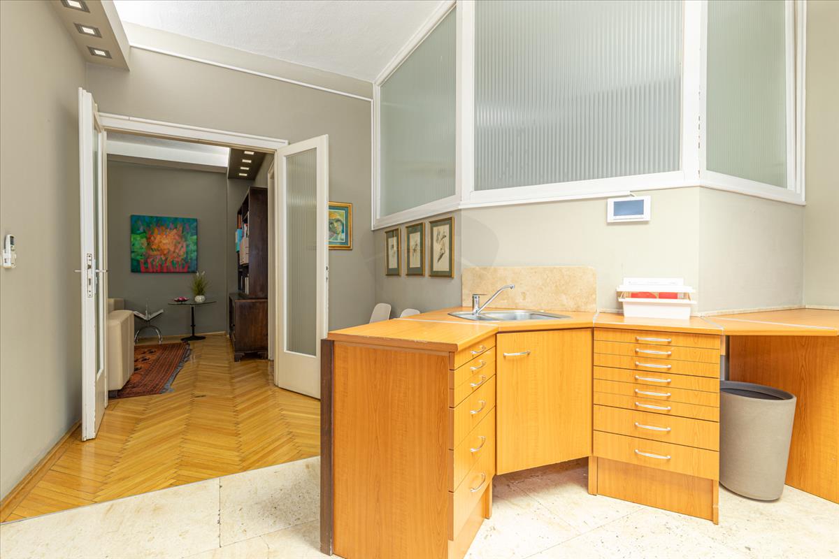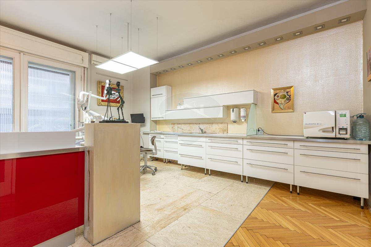 Korábban fogorvosi rendelő működött a lakásban, ennek köszönhetően a belső kialakítás funkcionálisan átgondolt, ugyanakkor könnyen visszaalakítható klasszikus lakófunkcióra. Két bejárat kialakítása is megoldható, így az ingatlan egyszerűen kettéosztható, akár két önálló lakássá vagy lakás–iroda kombinációvá.