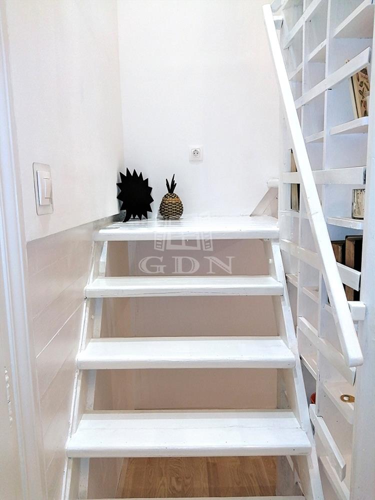 A Belgrád rakpart patinás, rendezett, kis lakóközösségű, az 1860-as években épült épületének első emeletén található ez a különleges, 64 m²-es (tulajdoni lapon 62 m²), két állógalériával (+20 m²) bővített lakás. Az ingatlan impozáns, 4, 2 méteres belmagassága, valamint a galériák feletti 1, 9 méteres belmagasság tágas, levegős érzetet biztosít.