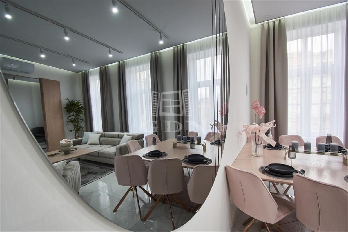Luxus, kényelem, ELEGANCIA! V. kerületben, a Károly körúton -Zsinagógára néző kilátással-, eladásra kínálunk egy 117 m2-es (valóságban 121 m2), 4 szobás (3 háló + amerikai konyhás nappali), dupla komfortos, egyedien és prémium minőségben felújított exkluzív, luxus lakást.
