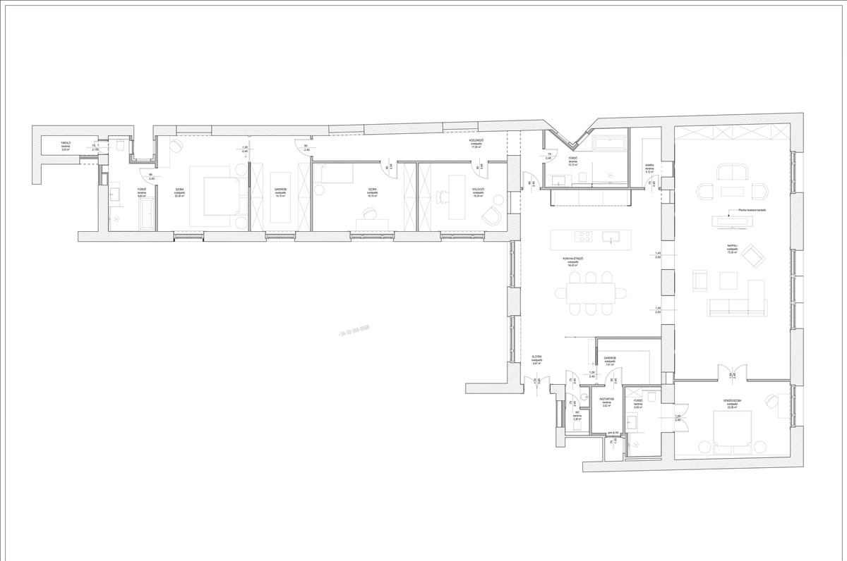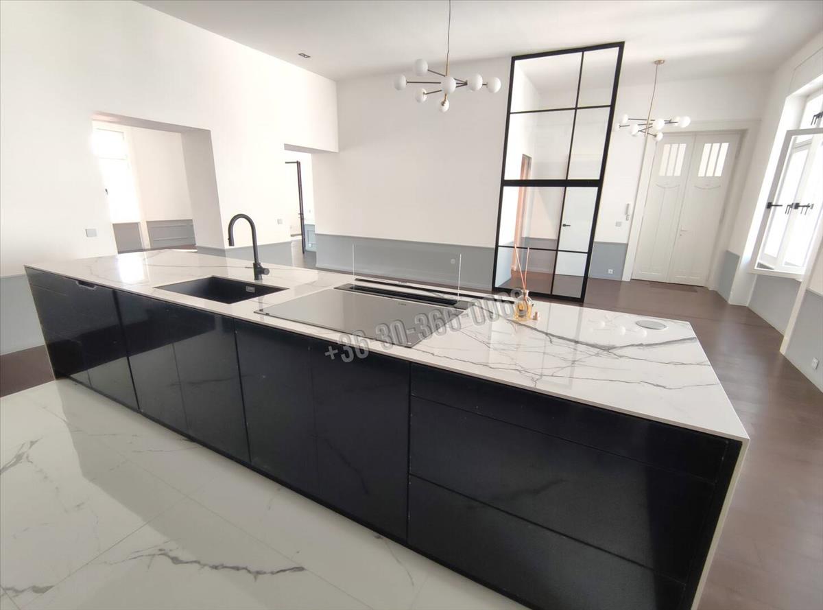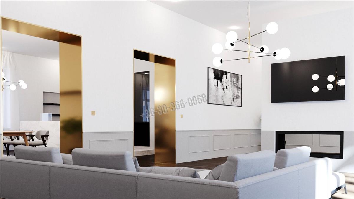 Art deco stílust követő, igényes lakásfelújítás. Nappali, dolgozó + étkező konyha beépített gépekkel + 2 gardróbszoba + 4 hálószoba + 3 fürdőszoba. 3 Rétegű ablakok elektromos redőnyökkel.