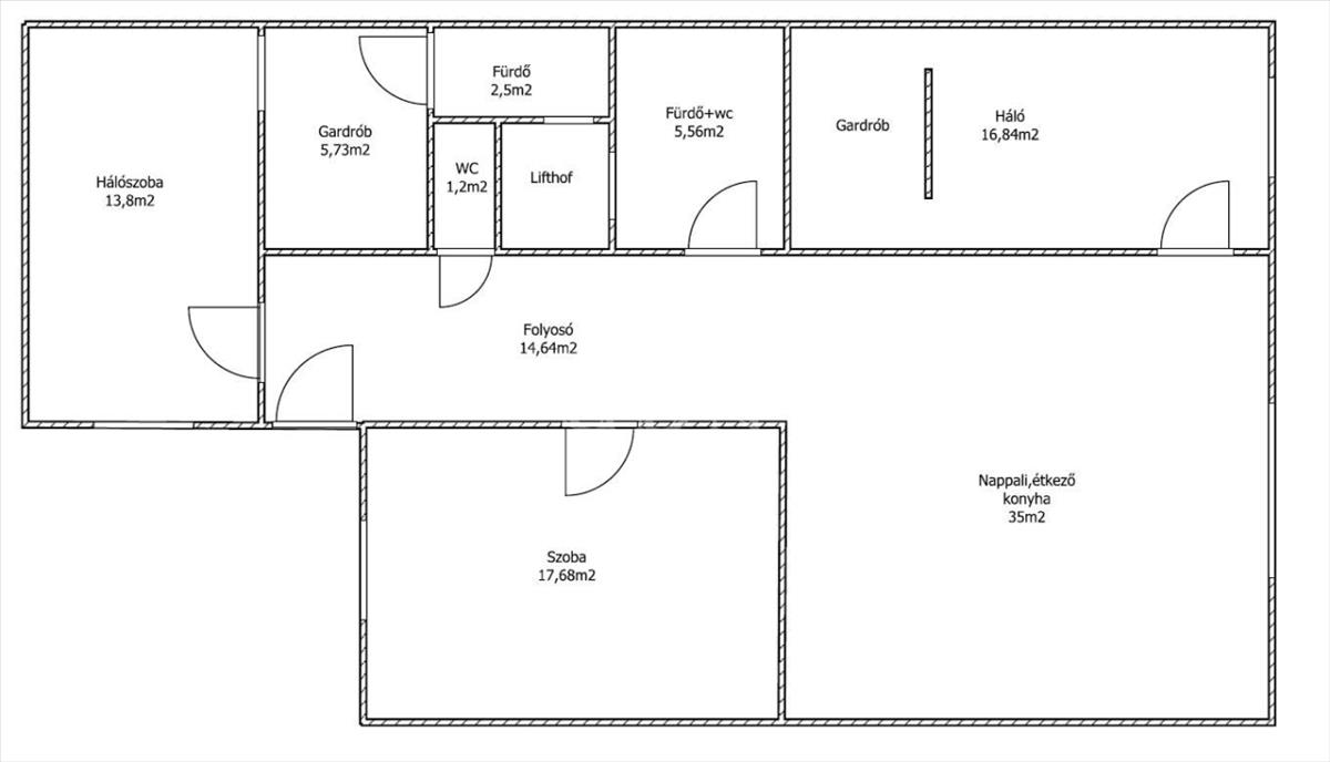 Elrendezés: nappali + 3 külön nyíló szoba