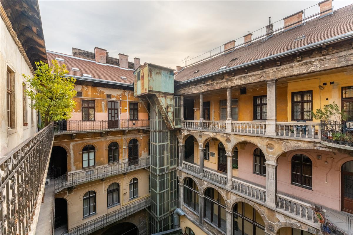 A lakás egy 1890-es évek elején épült, klasszikus polgári hangulatot árasztó, liftes ház legfelső emeletén található. Az épület rendezett, tiszta és pénzügyileg stabil; a társasház felelős gazdálkodásának köszönhetően folyamatosan karbantartott. a tető felújítása már megtörtént, a belső homlokzat pedig hamarosan megújul, pályázati forrásból történő festéssel.