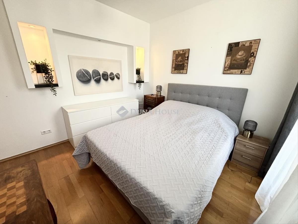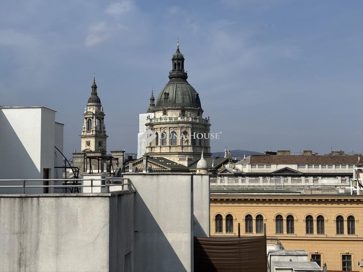 Eladó egy igazán különleges hangulatú penthouse lakás a belváros szívében, a Paulay Ede utca elején, a Central Passage modern épületében. a 2008-ban épült, liftes társasház minden szempontból a kényelmet és a minőséget képviseli az itt élő valóban úgy érezheti magát, mintha egy exkluzív hotel mindennapjait élvezné. a lakás a 7. emeleten található, alapterülete 72 m², praktikus elosztású, 2 szobás, rendkívül világos, nagy üvegfelületeinek köszönhetően egész nap természetes fényben úszik. Az ingatlan igazi különlegessége a 20 m²-es panorámás terasz, ahonnan páratlan kilátás nyílik a Bazilika ikonikus kupolájára ez a látvány minden napszakban lenyűgöző. a lakás élőben még magával ragadóbb, mint a képeken a terek, a fények és a panoráma együtt egy egészen egyedi atmoszférát teremtenek. a Central Passage elhelyezkedése kivételes:néhány lépésre található az Andrássy út, a Deák Ferenc tér, a Szent István-bazilika, valamint számtalan étterem, kávézó, színház és üzlet. a környék a városi élet egyik legpezsgőbb központja, mégis a lakás csendes és nyugodt. Az épület a Király utca felől is megközelíthető, ami tovább növeli a kényelmet és a praktikumot. a lakáshoz tartozik egy mozgássérült parkolóhely a mélygarázsban, amely a vételár részét képezi. Ez az ingatlan tökéletes választás mind saját otthonnak, mind befektetésnek ritka lehetőség ilyen adottságokkal a belvárosban.