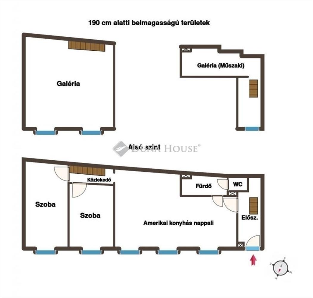 A két szoba fölött fekvő galéria (165 cm)l, illetve egy gépészeti tároló került kialakításra, így összesen 83 m2 a lakás.