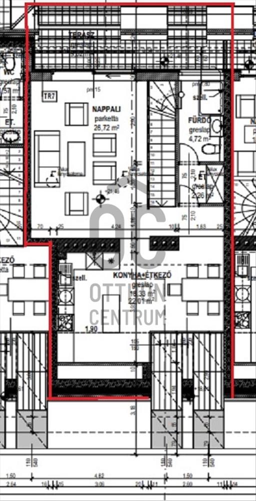 A két szintes emelet ráépítés keretében összesen 9 db. , Egy- illetve belső kétszintes, változatos méretű (nettó 37, 66-117, nm-es) és elosztású (nappali + 1, 2, 3 hálószobás), teraszos okos otthon épül.