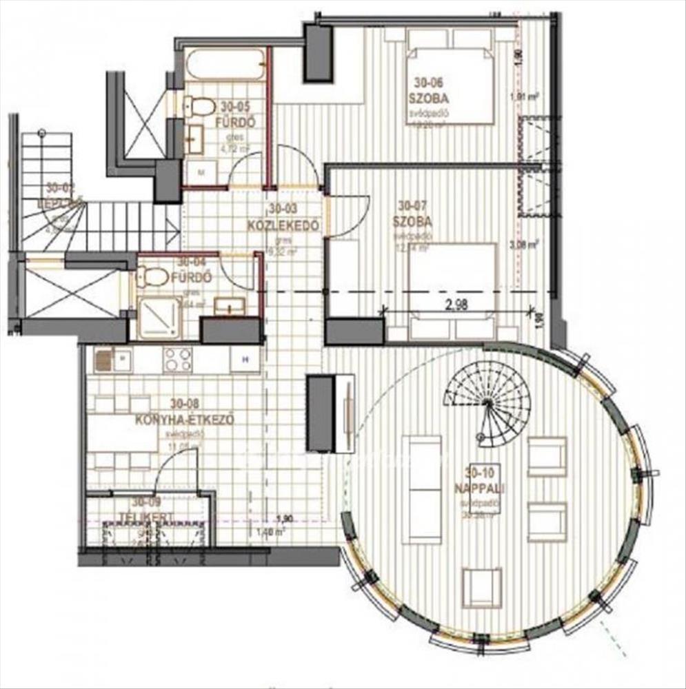 Az épület 5. emeletén helyezkedik el, ez a háromszintes lakás melynek ablakai utcára néznek, 119, 245 m2 alapterületű, duplakomfortos, nappali-konyha-háromszoba valamint 2, 41 m2 télikerttel rendelkezik.Budapest 6. kerületében, a pesti Broadway közelében, 15 új lakás kerül értékesítésre. Az új projekt, az unesco világörökség részét képező műemlék védettség alatt álló épület felső szintjén és tetőterében helyezkedik el. Műszakilag és esztétikailag is igazodik a környék exkluzív elvárásaihoz. Méretüket tekintve 64 -154 nm alapterületű lakások választhatók, melyek egyszintes, kétszintes illetve belső háromszintes luxuslakások nagyméretű tetőterasszal, télikerttel minden igényt kielégítő kivitelben készülnek. Műszaki tartalmát tekintve, külső nyílászárók rendszere: Gealan s9000 ötkamrás, 3 rétegű, kiváló hang és hőszigetelést biztosító rendszer, elektromos redőnyökkel. a melegburkolatú helyiségekben oldalfali fan-coilos, a hidegburkolatú helyiségekben padlófűtéses megoldás van. a hőszivattyúk saját vezérlő automatikával rendelkeznek, melyek a fűtési-hűtési kört is tudják vezérelni, időjárásfüggő szabályozással működnek.
