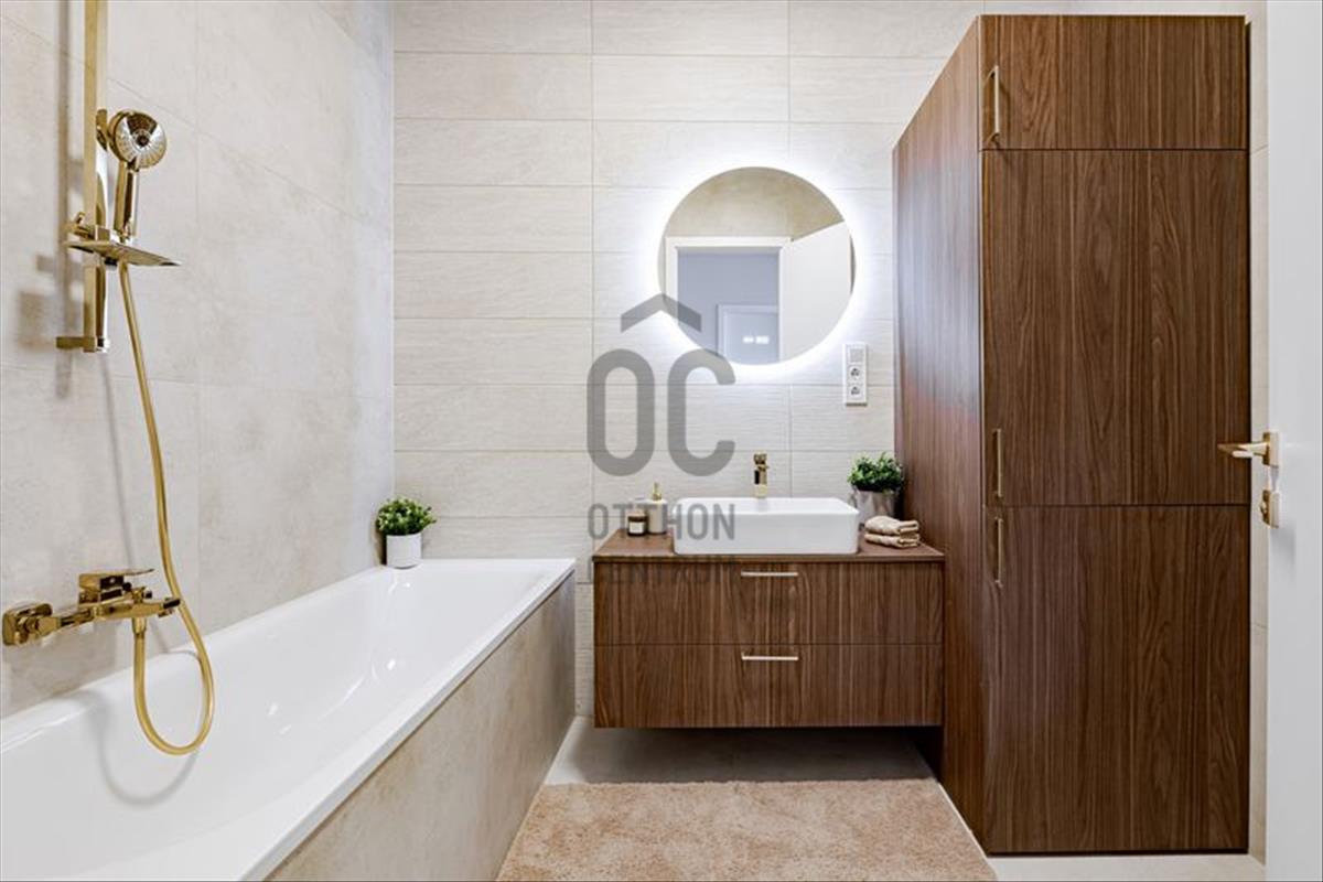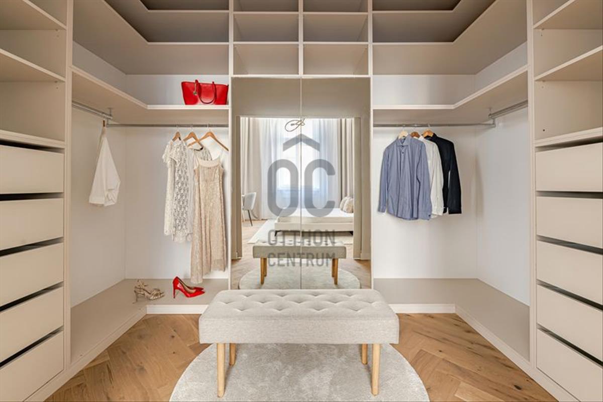 A 30 m2-es nappali-konyha-étkező hatalmas ablakai miatt nagyon világos, napos helyiség. Az új Whirlpool gépesített konyha indukciós főzőlapot, légkeveréses sütőt, mikrót, páraelszívót, mosogatógépet, hűtőt tartalmaz. Az impozáns méretű hálószobához egy 8m2-es walk-in gardróbszoba tartozik, mely igazi luxus-érzést nyújt.