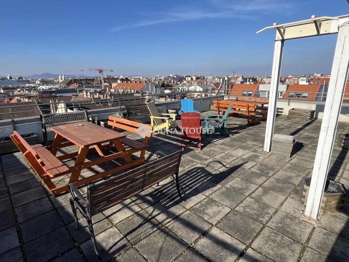 The building offers amenities rarely available in this category: a bicycle storage room, a well-maintained shared gym for residents, and a rooftop panoramic terrace that adds genuine quality of life to everyday living. Common cost is 44500 forint.