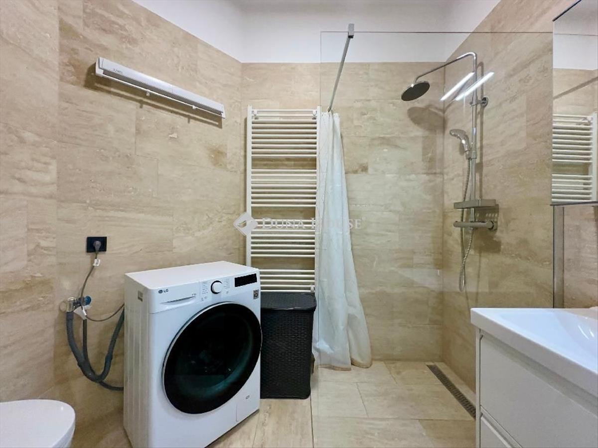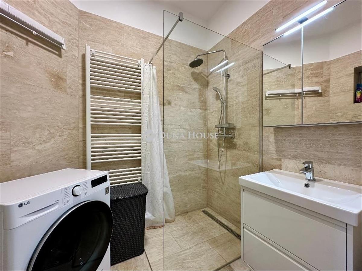 Az ingatlan ideális elosztású: egy légtérben van a tágas előszoba, étkezős gépesített konyhával, ahol a magas szekrényeknek köszönhetően rengeteg tárolóhely áll rendelkezésre. Innen nyílik egy gardróbbal ellátott közlekedő és két külön nyíló, délnyugati tájolású, világos, csendes szoba.