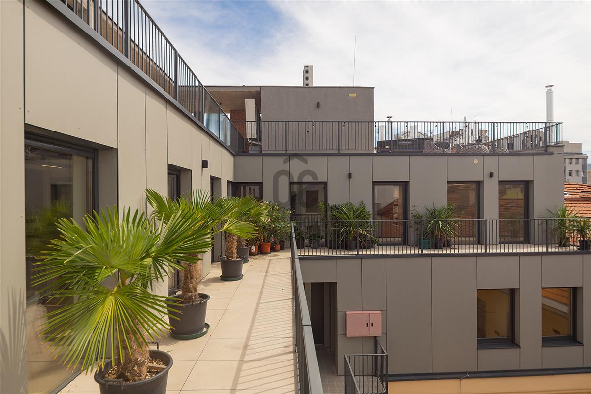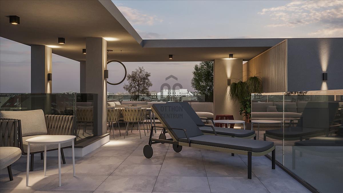A projekt negyedik szintjén a belvárosban párját ritkítóan nagyméretű tetőterasz került kivitelezésre.