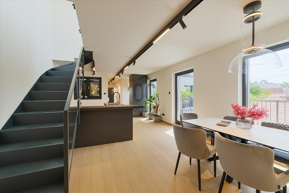 A Penthouse lakások a tradíció és a korszerűség tökéletes kapcsolódása Pest tetején, egy történelmet megidéző műemléki környezetben, országos műemléki védettség alatt lévő házban. a tervezők arra törekedtek, hogy a lakások minél több irányból kapjanak természetes megvilágítást, valamint a lakóegységek intimitása biztosított legyen.