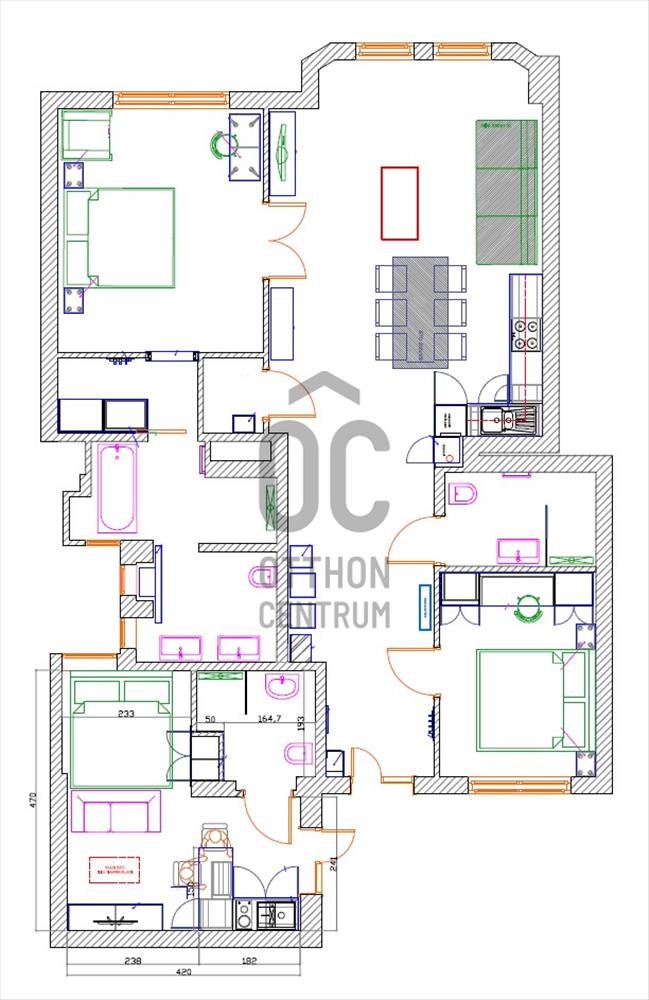 •egy tágas, nappali + konyha + 2 hálószoba + 2 fürdőszobás lakásra,