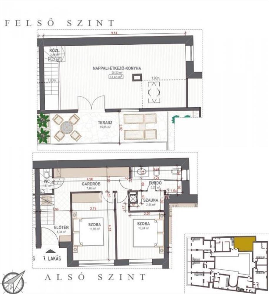 Eladó Budapest VI. kerületében, felújított liftes házban egy 2016-ban épült, 72 négyzetméteres, prémium kivitelezésű duplex lakás, saját 16 négyzetméteres tetőterasszal és szaunával.Virtuális séta megtekinthető az alábbi linken: