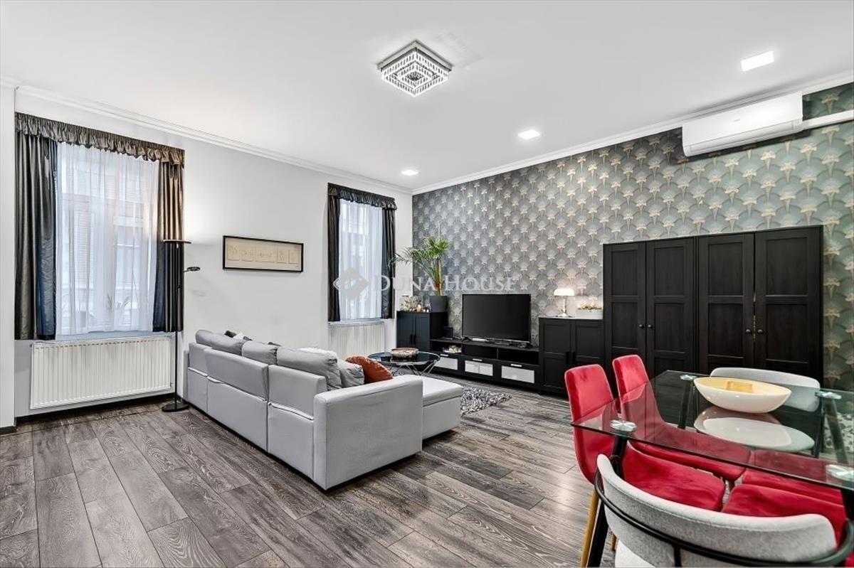 ~ English below ~Az Andrássy út közvetlen közelében, a Kodály-körönd és a Lövölde tér között ízlésesen felújított 1. emeleti lakás eladó egy XIX. Század végén épült, hangulatos polgári épületben. a vételár tartalmazza a gépesített konyhát és a teljes berendezést (pipereasztal kivételével)! a lakás 2018-ban teljes felújításon esett át, de a polgári stílus jegyében megőrizték a patinás és hangulatos beltéri ajtókat, amelyek szintén felújításra kerültek. Elrendezését tekintve tágas nappali (30 m2), kényelmes méretű konyha, hálószoba, fürdőszoba és külön wc a jelenlegi kialakítás, de igény esetén további egy szoba kialakítható. Műszaki jellemzők:- gázcirkó fűtés (Mika kazánnal)- új klímaberendezés- új villanybojler- rézvezetékek- gépesített konyha- kétrétegű műanyag nyílászárók (nappali kivételével redőnyökkel felszerelve)A lakás tehermentes és a tulajdoni lapon 58 m2, de a valós mérete 63 m2. a kellemes színhasználatnak és nagy belmagasságnak köszönhetően (eredetileg 5 m, de jelenleg álmennyezettel csökkentve kb. 3, 6 M) kifejezetten tágas a térérzet, de igény esetén állógaléria kialakítható. a közös költség 46. 400, - Ft/hó (tartalmazza a vízfogyasztást), amelyből 5. 800, - Ft a felújítási alap és amelyből 20. 300, - Ft jelenleg egy határozott időre előírt célbefizetés annak érdekében, hogy a tető felújításra kerüljön. a tető felújítása érdekében a társasház a 6. kerületi önkormányzat által meghirdetett pályázaton indult, amely még folyamatban van (a pályázat miatt is szükség volt a célbefizetésre, hogy rendelkezésre álljon a társasház részéről a szükséges önerő a pályázaton való induláshoz). a közelben hangulatos és neves éttermek, kávézók, illetve szupermarketek, piac, gyógyszertár, orvosi rendelő és egyéb szolgáltatások sétatávolságra elérhetők. Közel van a számos kikapcsolódási és szórakozási lehetőséget nyújtó Városliget, a tömegközlekedés pedig kiváló, így a város minden pontjára könnyen eljuthat (1-es metró, 4-6 villamosmegálló a közelben, több troli és buszjárat), így akár a Normafa is egyetlen buszra szállva elérhető. Bejelentett lakcímmel a lakossági parkolás elérhető, amely 2 autóra igényelhető. a tastefully renovated 1st floor apartment is for sale in the immediate vicinity of Andrássy Avenue, between Kodály-körönd and Lövölde Square, in a cozy bourgeois building built at the end of the 19th century. THE purchase price includes the mechanized kitchen and all the furnishings (except the dressing table)! The apartment underwent a complete renovation in 2018, but keeping the bourgeois style, the patinated and cozy interior doors were preserved, which were also renovated. In terms of its layout, the current layout consists of a spacious living room (30 sqm), a comfortable kitchen, a bedroom, a bathroom and a separate toilet, but an additional room can be created if desired. Technical features:- gas central heating (with Mika boiler)- new air conditioning- new electric boiler- copper pipes- mechanized kitchen- double-layer plastic windows equipped with shutters (except for the living room)The apartment is unencumbered and on the title deed is 58 sqm, but its actual size is 63 sqm. Thanks to the pleasant use of colors and high ceiling height (originally 5 m, but currently reduced by a false ceiling to approx. 3. 6 M), the feeling of space is particularly spacious, but a standing gallery can be created if desired. The common cost is 46, 400, - HUF/month (including water consumption), of which 5, 800, - huf is the renovation fund and 20, 300, - huf is currently a fixed-term target payment in order to have the roof renovated. In order to renovate the roof, the condominium started a tender announced by the 6th district municipality, which is still ongoing (the tender also required a target payment so that the condominium had the necessary funds to participate in the tender). Nearby, cozy and famous restaurants, cafes, supermarkets, a market, a pharmacy, doctor and other services are within walking distance. The City Park (Városliget), which offers numerous recreational and entertainm ent opportunities, is nearby, and public transport is excellent, so you can easily reach every point of the city (metro 1, 4-6 tram stops nearby, several trolley and bus lines), so even Normafa can be reached by taking a single bus. With a registered address, public parking is available, which can be requested for 2 cars.