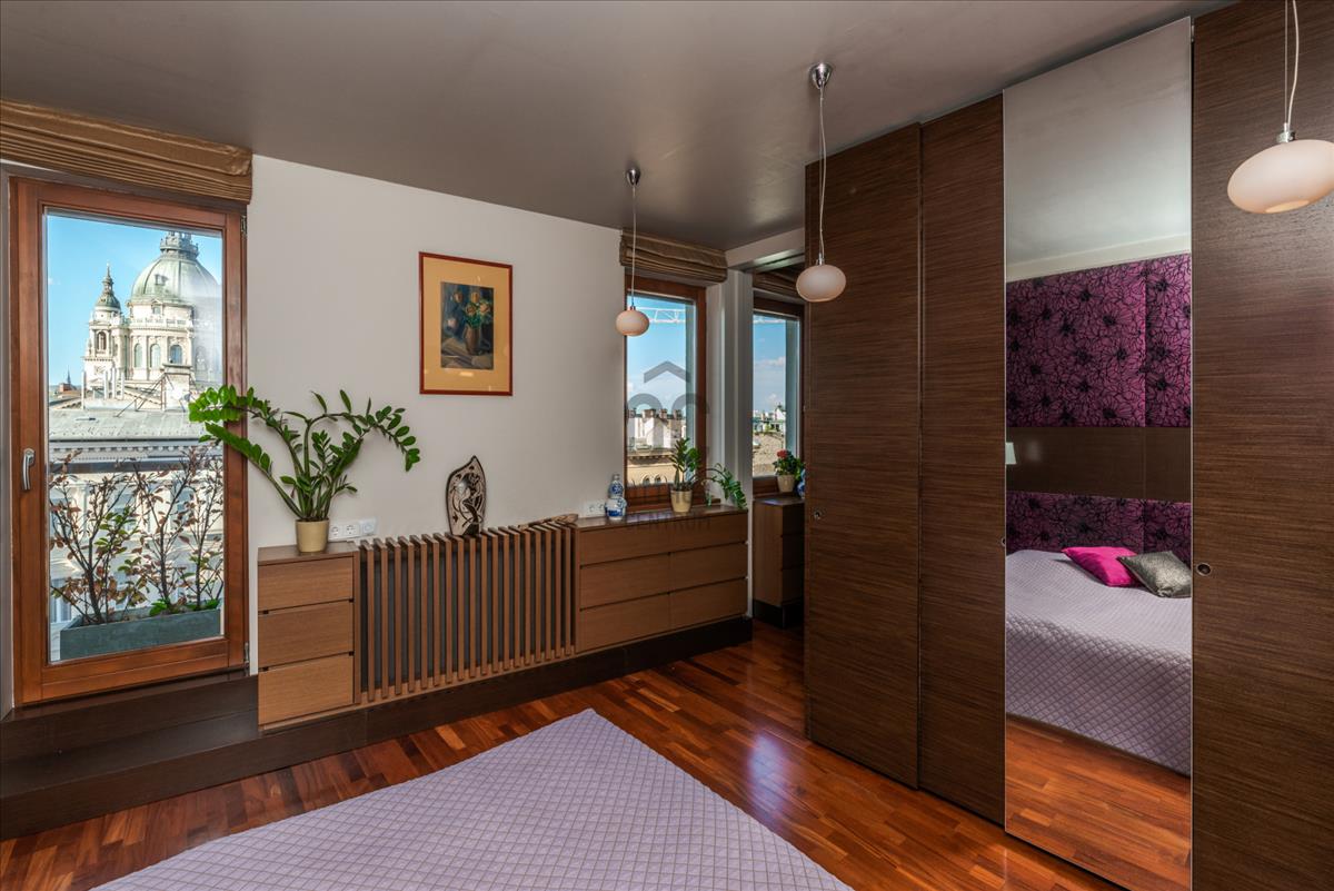 Az ingatlan különlegességét nemcsak a két lakás egybenyitásával kialakított, egyedi elrendezés adja, hanem a magas szintű kivitelezés, a minőségi anyaghasználat, és az a páratlan panoráma, amely minden ablakból elénk tárul. a lakásból nemcsak a Szent István-bazilika, hanem a Mátyás-templom is látható – mindez akár a konyhából gyönyörködve is élvezhető.