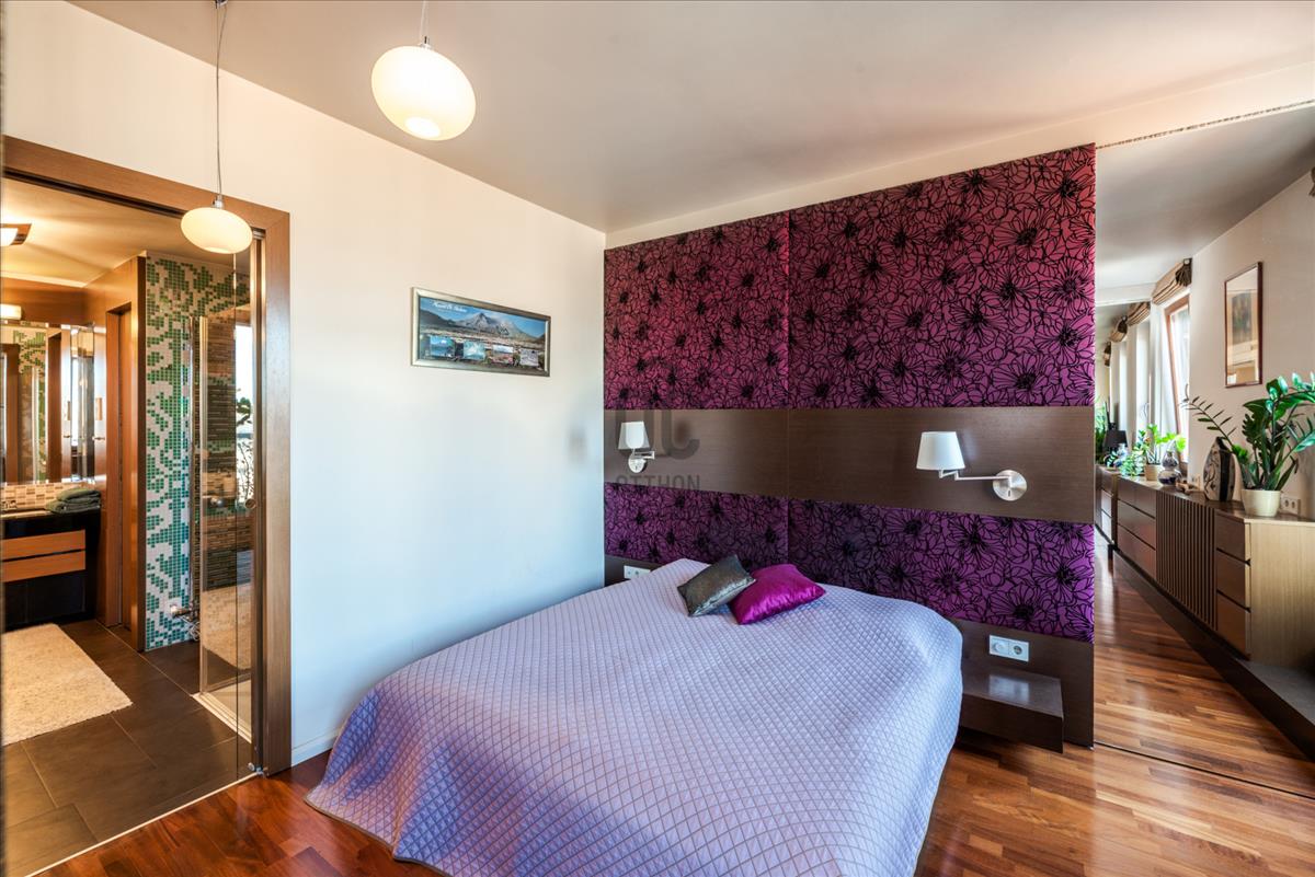A tágas, elegáns fürdőszobában szauna is helyet kapott, amely tovább fokozza az otthon kényelmét és a mindennapi luxus érzetét. a lakás kialakítása során minden részletre gondosan ügyeltek, így tökéletes választás mindazok számára, akik egy igazán különleges, városi panorámás otthont keresnek.