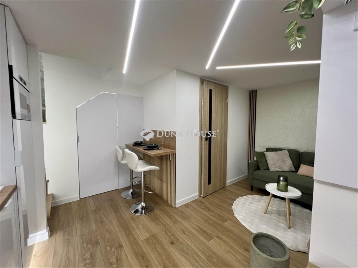 Eladó frissen felújított, berendezett, belső kétszintes lakás az Eötvös utcában, a Nyugati pályaudvar közelében! Az ingatlan alapterülete 19 m², a belső kétszintes kialakításnak köszönhetően azonban a hasznos alapterület 36 m², így rendkívül praktikus és jól kihasznált elrendezésű. Az alsó szinten egy amerikai konyhás nappali, zuhanyzós fürdőszoba és előtér található. a felső szinten két külön szoba kapott helyet: az egyikben kényelmes, két személyes franciaágy található, míg a másik jelenleg dolgozószobaként funkcionál. a lakás frissen felújított, teljesen berendezett és gépesített. a gépesített konyhába mosogatógép is beépítésre került, amely az ár részét képezi. a padlófűtés biztosítja a kellemes hőérzetet, a klíma előkészítése megtörtént. a lépcső alatti rész praktikusan kihasznált, ide került a mosógép és a bojler. Az ingatlan per- és tehermentes, 1/1 tulajdonban van. Kiváló elhelyezkedésének köszönhetően befektetésnek, hosszú távú kiadásra vagy első lakásnak is tökéletes választás! További információkért keressen bizalommal!