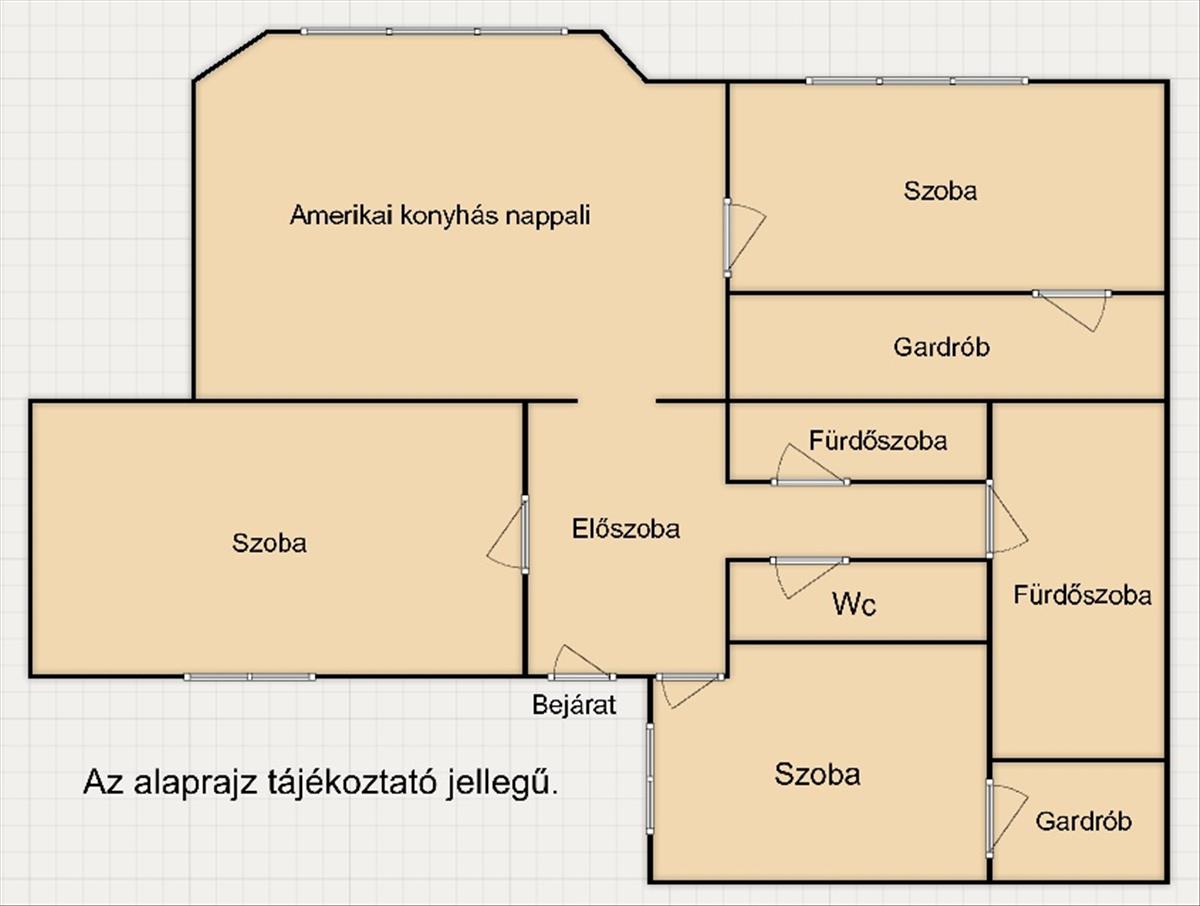 - Amerikai-konyhás nappali + 3 hálószoba, 2 fürdőszoba, 2 wc.