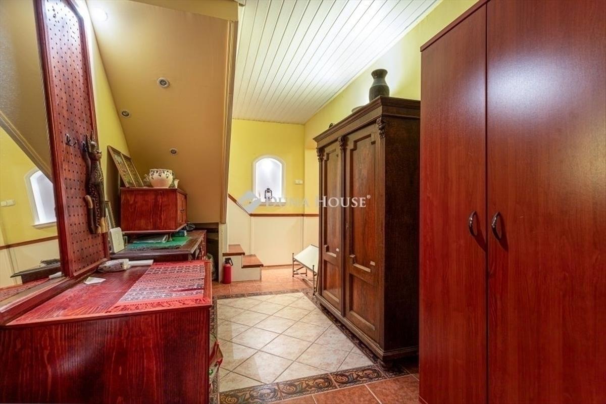 Az alsó szinten nagy tárgyalóhelyiség, előtérrel, közlekedővel, az emeleten pedig helyet kapott a konyha- étkezővel, egy szoba, gardróbbal és egy fürdőszoba.