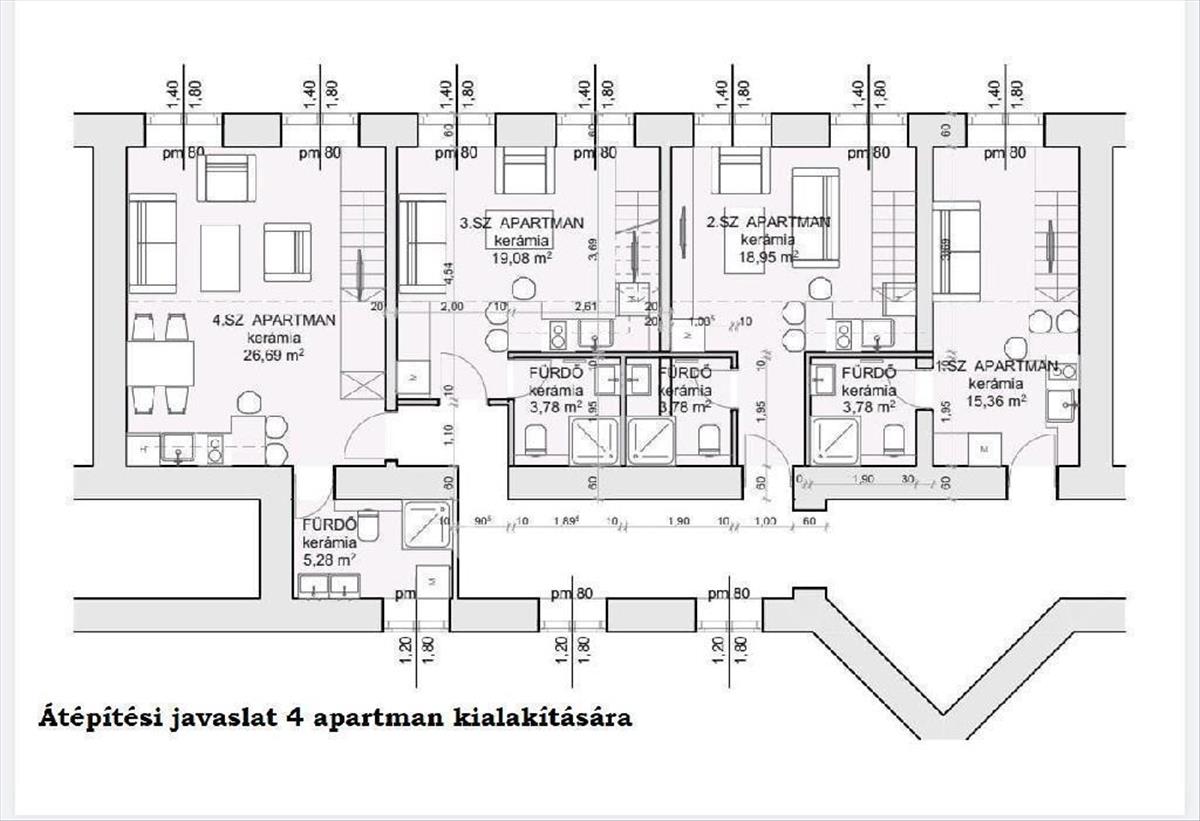 Az ingatlan különleges adottságokkal rendelkezik: az alaprajzának köszönhetően könnyedén kialakítható egy négylakásos apartman, ahol minden lakrész külön bejárattal, saját fürdőszobával és teakonyhával rendelkezhet (átalakítási terv elérhető).