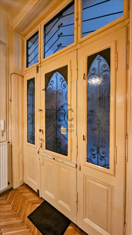 A polgári hangulatú, tulajdonilap alapján 94 m2 alapterületű lakás 3 szobát és egy gardróbot (régen úgynevezett cselédszobát) foglal magában.