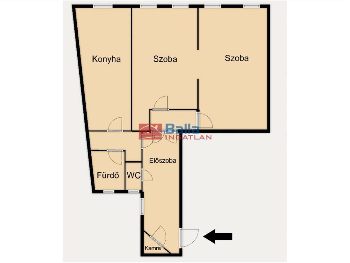 -82 m², 2 külön nyíló szoba → könnyen 3 szobássá alakítható