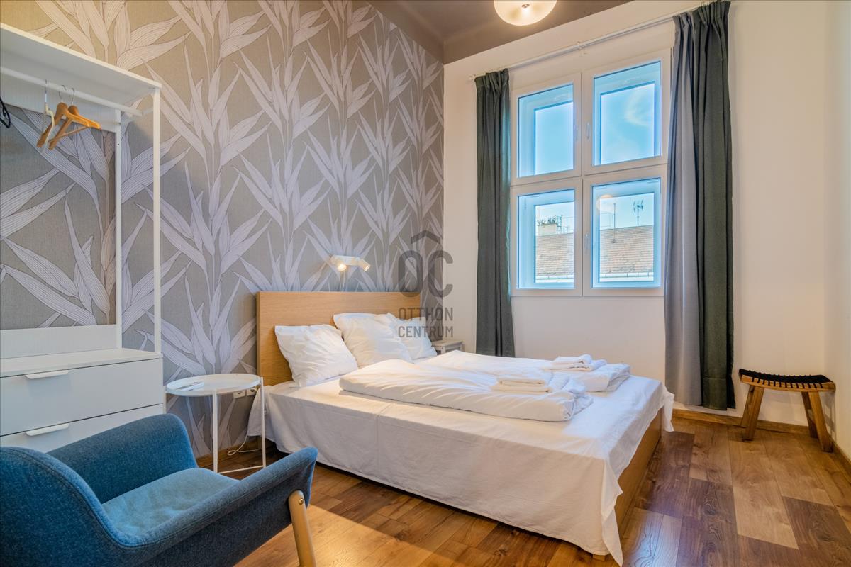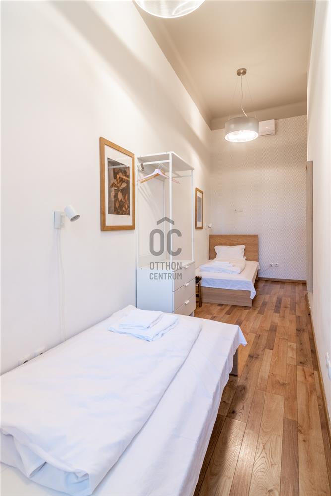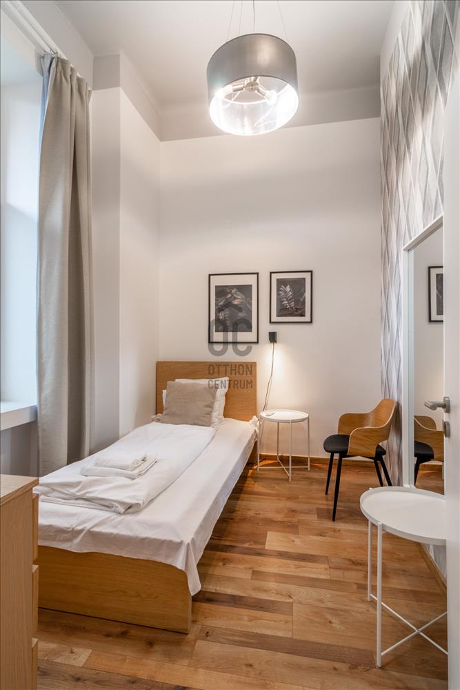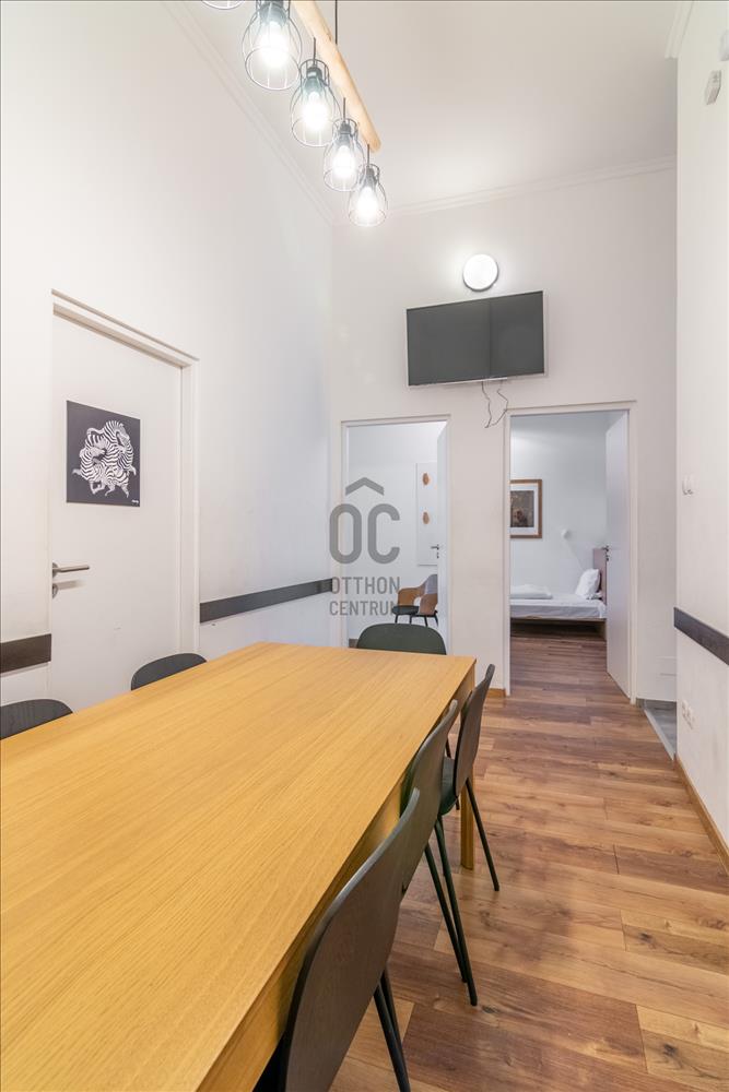 A lakás Magánszálláshely Engedéllyel és HRSZ-re szóló társasházi közgyűlési hozzájáruló határozattal is rendelkezik - 7 főre, 4 vendégszoba (2 db 12 m2-es és 1 db 13, 1 m2-es utcai 1 db 8 m2-es udvari szobával). Lift nincsen, de az alacsony közös költség ezért kárpótol.