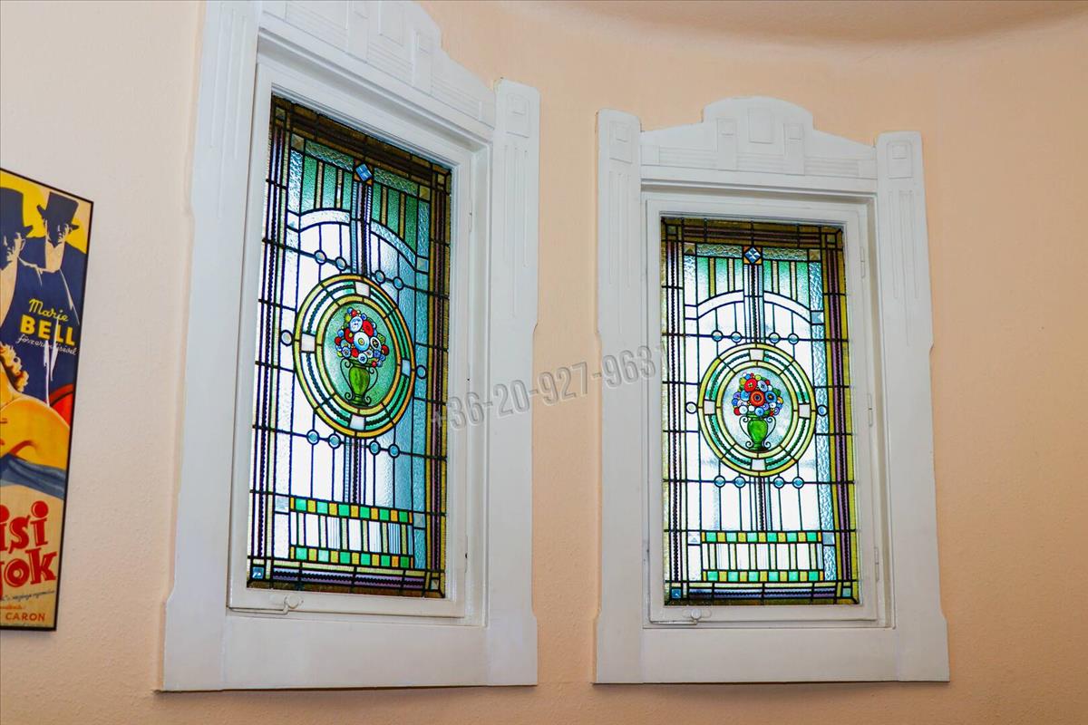 – Lenyűgöző, kézzel festett ólomüveg ablakok a nappaliban és a dolgozószobában
