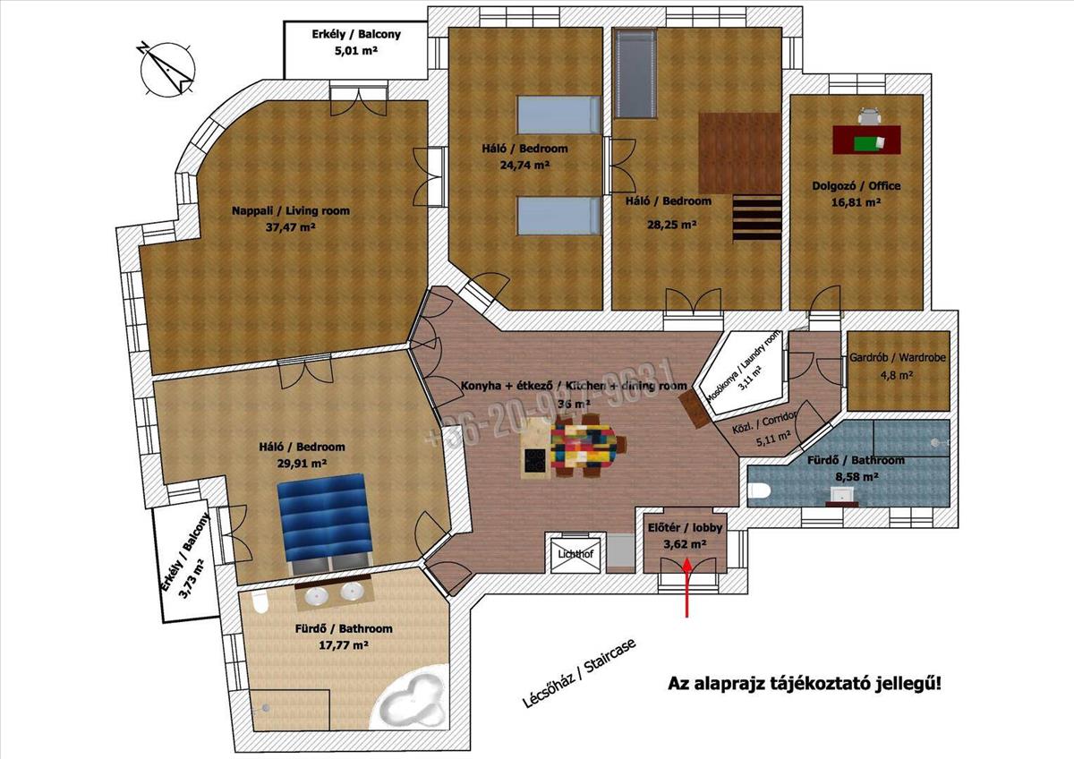 – Hivatalos alapterület: 200 m², tényleges mért: 220 m²