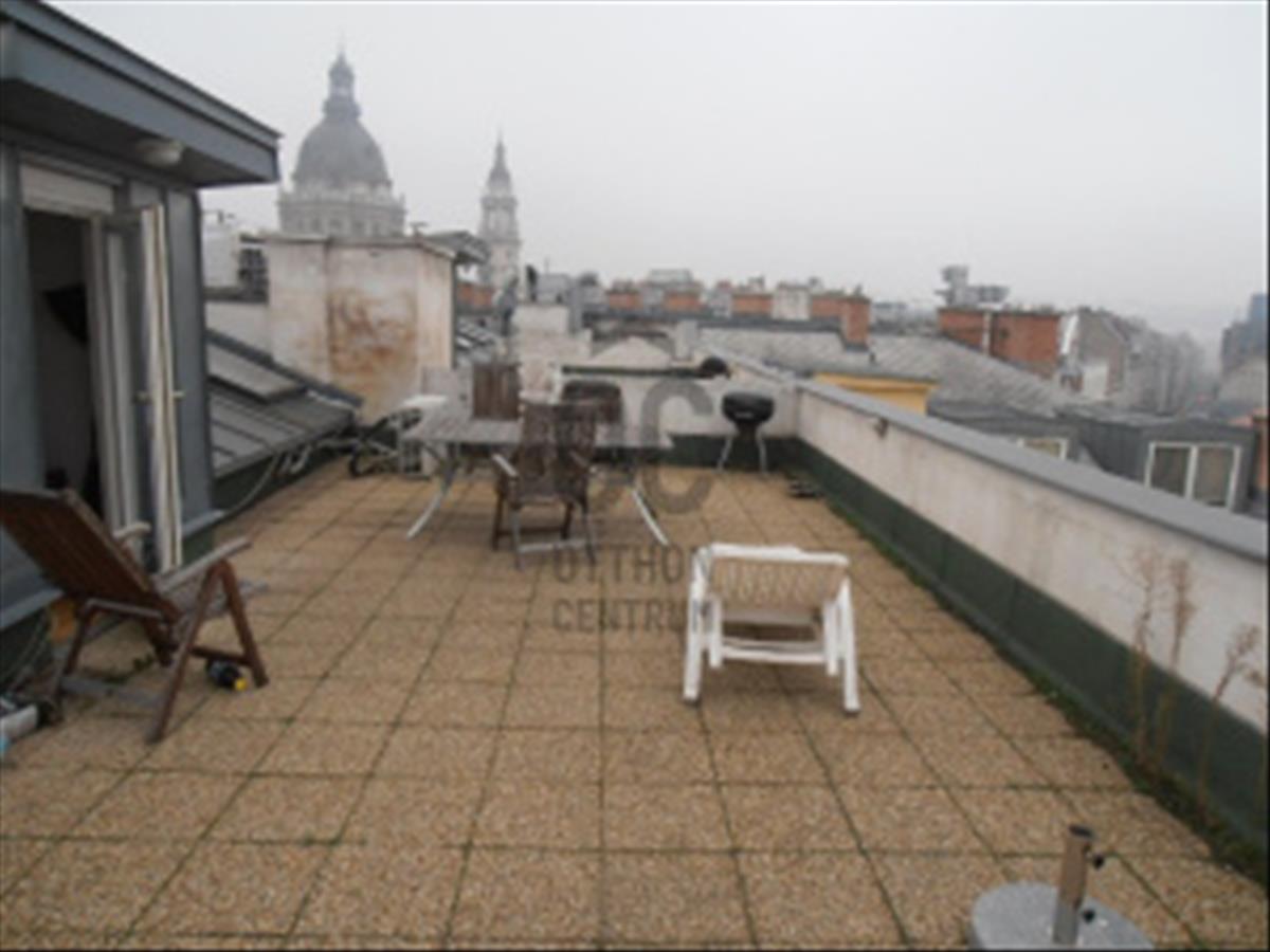 Bazilika mellett eladó, egy jól karban tartott házban, negyedik emeleti ráépítéssel készült, nappali plusz négy szobás, óriási tetőterasszal rendelkező ingatlan.Az ingatlant kényelmesen, zárt lépcsőházon keresztül lehet elérni. Az előszobából a nagy, központi helyet elfoglaló nappaliba jutunk melyből mind a négy külön bejáratú szoba valamint a konyha és a fürdő is elérhető. a lakást a jól megválasztott, igényes burkolatok valamint a tér maximális kihasználása ideális hellyé teszi azok számára akiknek sok helyiségből álló, központi helyen fekvő lakásra van szüksége.
