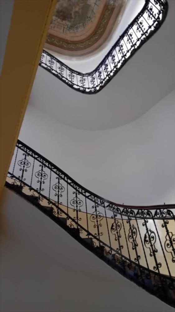 Gyönyörű, freskóval díszített lépcsőházban az első emeleten helyezkedik el a lakás, két bejárati ajtóval rendelkezik, amelyekből az egyik a lépcsőházból, a másik a körfolyosóról nyílik. 4, 1 Méteres belmagassága, hatalmas három méteres fa ajtajai tágas teret biztosítanak. a belmagasság miatt praktikusan galériázható.